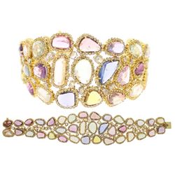 50.21 TCW SLICE SAPPHIRE & DIAMOND BANGLE 18K GOLD & SILVER