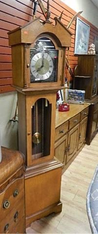 GRANDFATHER CLOCK - TEMPUS FUGIT - GLASS THERE BUT NEEDS TO BE REINSTALLED