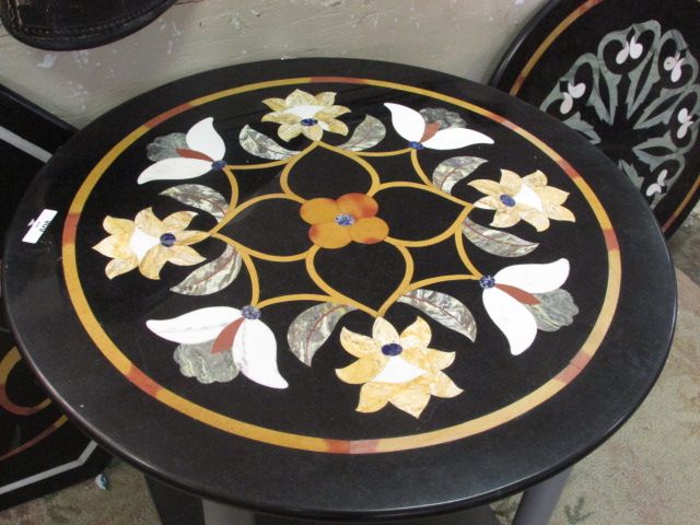 GRANITE - ROUND - INLAID PICTURE - MULTIPLE FLOWERS