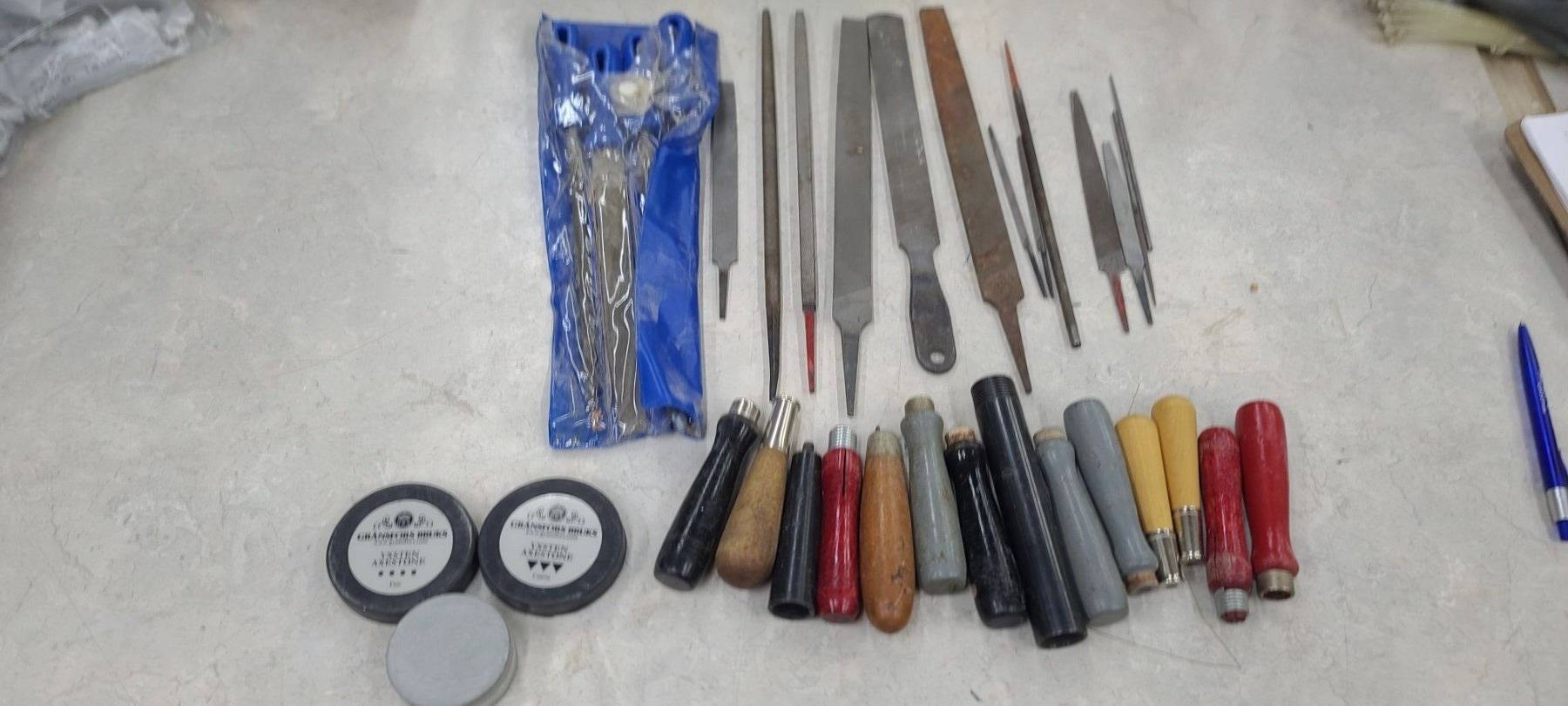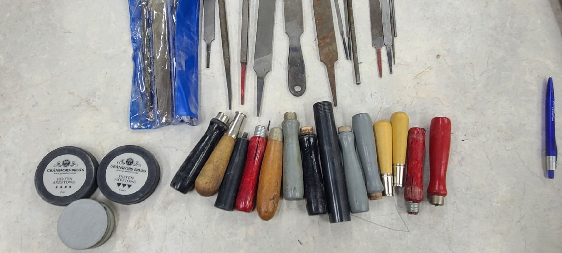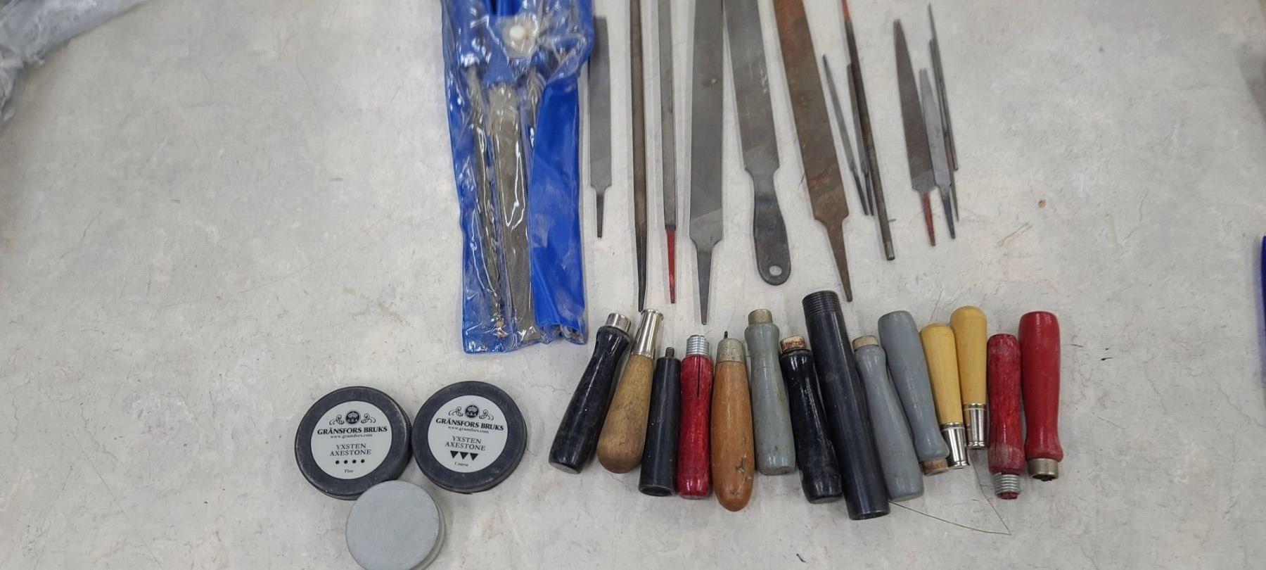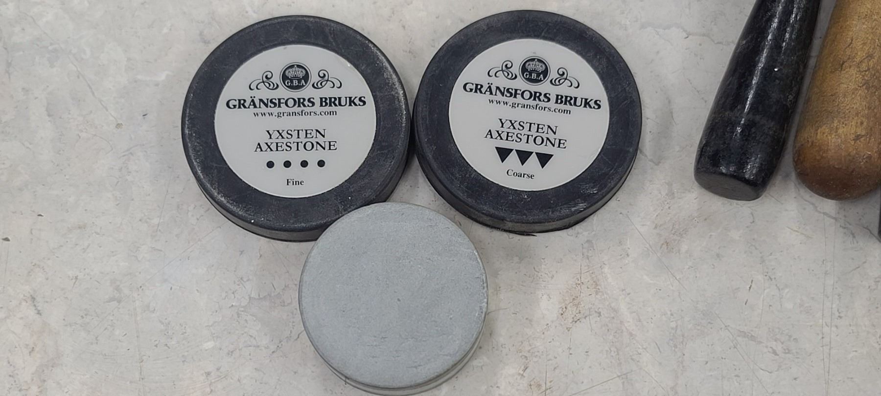 GRANSFORS BRUKS COARSE AND FINE AXE SHARPENING STONE AND ASSORTED FILES