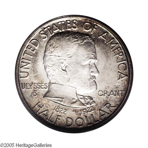 <B>1922<50C> Grant with Star MS64 PCGS.</B></I> Long considered one of the keys to the commemorative series, this low mintage issue is both an absolute as well as a condition rarity. The surfaces are bright and satiny with near-brilliant centers that are encircled by deep golden-brown around the rims. An outstanding, upper-end MS64 example of this important commemorative half.<BR><I>From The Henry R. Luhrs Collection.</B></I>