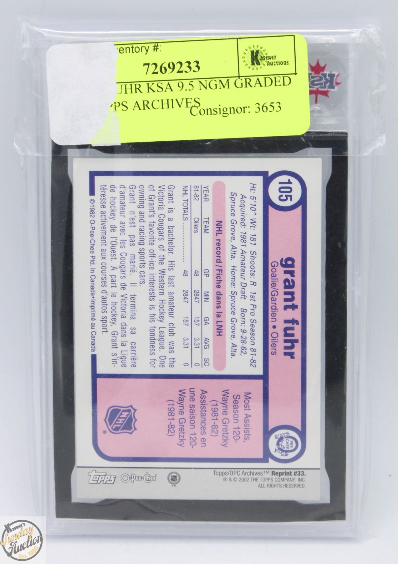 GRANT FUHR KSA 9.5 NGM GRADED 2002 TOPPS ARCHIVES