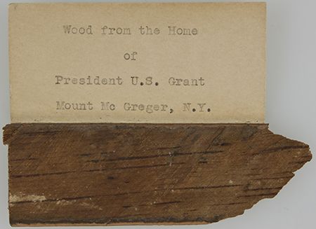 (1822 - 1885) Eighteenth President of the United States and Union lieutenant general. Presidential relic from the home of Grant consisting of a piece of wood measuring 4" x 1 ½" bearing a typed tag reading: "Wood from the Home of President U.S. Grant Mount Mc Greger, N. Y.". Acquired from the collection of a privately owned New York State museum assembled during the 1930's. Overall very good.