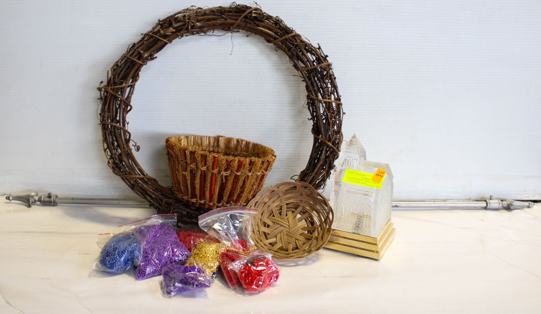 GRAPE WREATH, CRAFT CHAINS, 42" CURTAIN ROD, AND