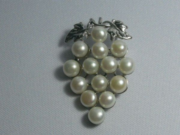 GRAPES WHITE PEARL CZ BROOCH AUTHENTIC PHILIPPINE PEARL **|**|** GRAPES WHITE PEARL CZ BROOCH AUTHENTIC PHILIPPINE PEARL METAL SILVER ; MSRP: $150
