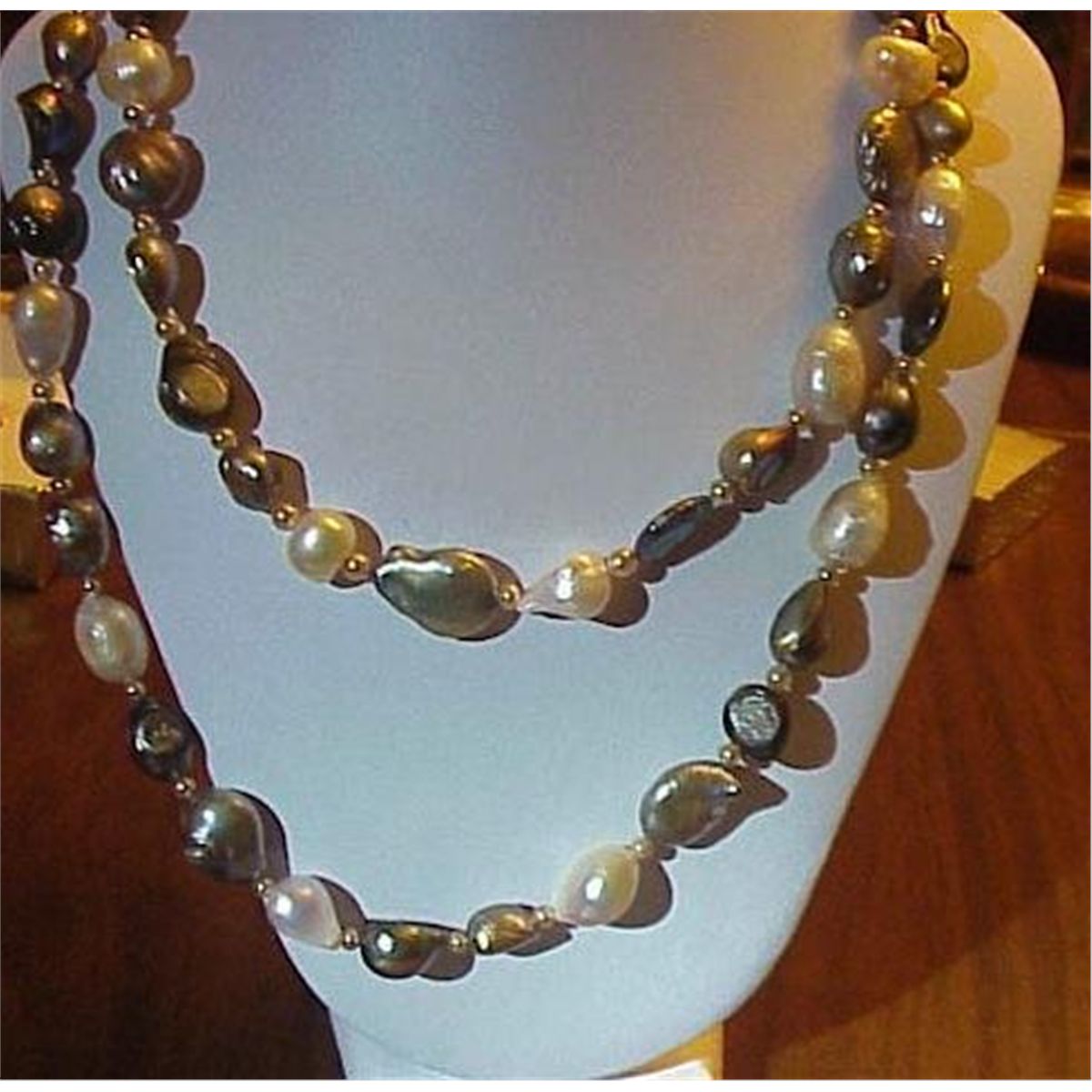 GRAY BEIGE FRESH WATER PEARLS SILVER COINS TWO STRANDS NECKLACE MWF1017