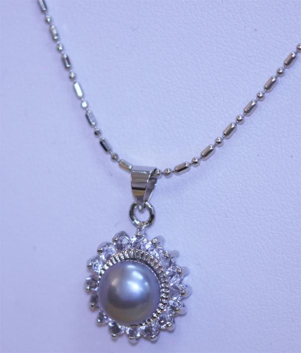 GRAY PEARL AND CZ NECKLACE **|**|** GRAY PEARL AND CZ NECKLACE ; MSRP: $100
