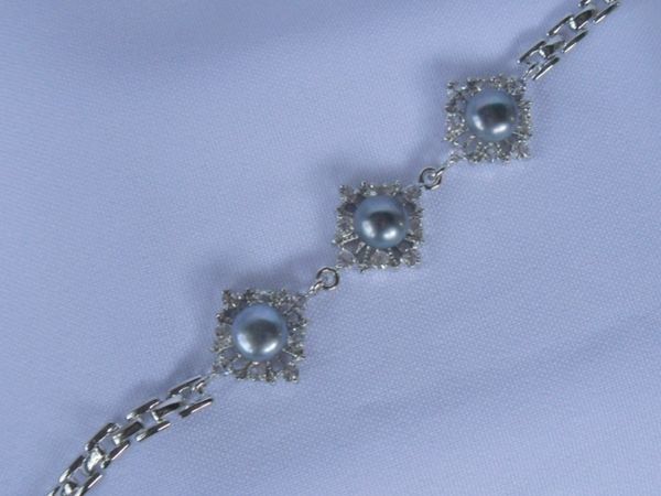 GRAY PEARL CZ SILVER BRACELET***METAL: SILVER; APPROXIM **|**|** GRAY PEARL CZ SILVER BRACELET***METAL: SILVER; APPROXIMATELY 10GRAMS 8-INCH ; MSRP: $200