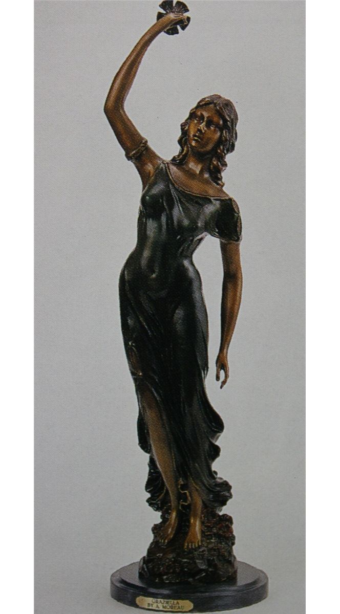 "GRAZIELLA" BRONZE SCULPTURE - AFTER A. MOREAU - BEAUTIFUL COLOR PATINA - MOUNTED ON A FINE ITALIAN MARBLE BASE - BEAUTIFULLY DETAILED - SIGNED - MINT CONDITION - 34"H X 10"W - LOST WAX CAST BRONZE