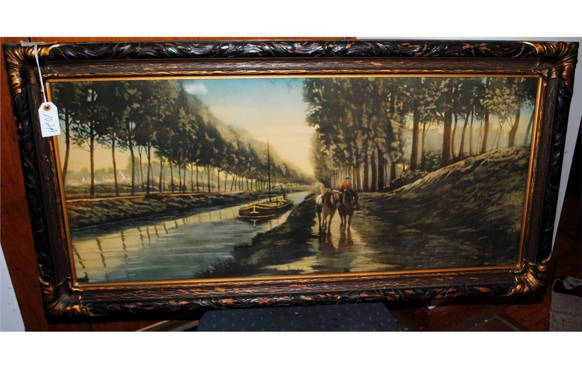 GREAT "ART DECO" PRINT WITH THE ORIGINAL ORNATE FRAME - APPROX. 45 1/2 INCHES IN LENGTH AND 25 1/2 INCHES IN HEIGHT