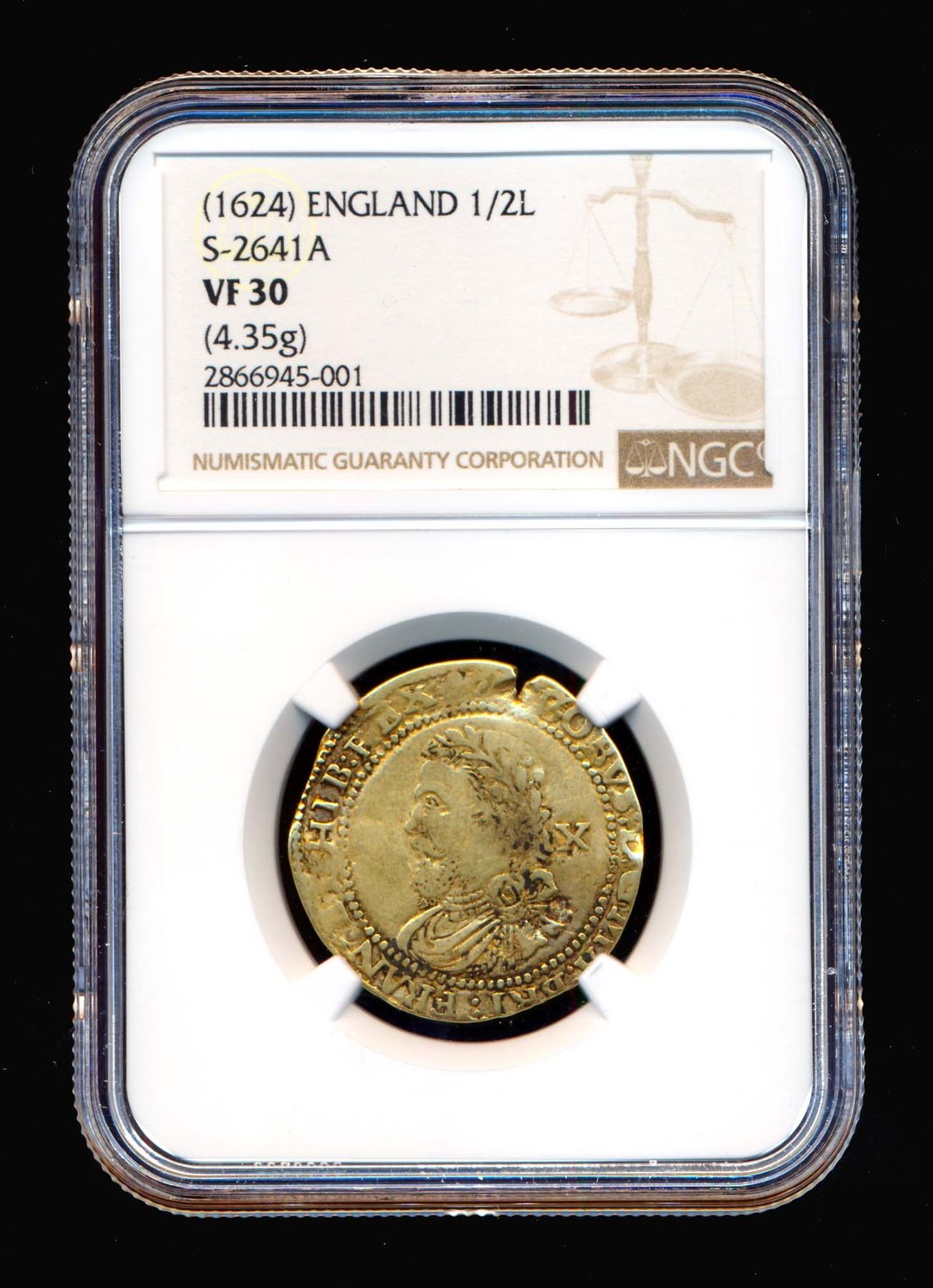 GREAT BRITAIN 1/2 Laurel 1624 James I S-2641A 4.35 gm. NGC