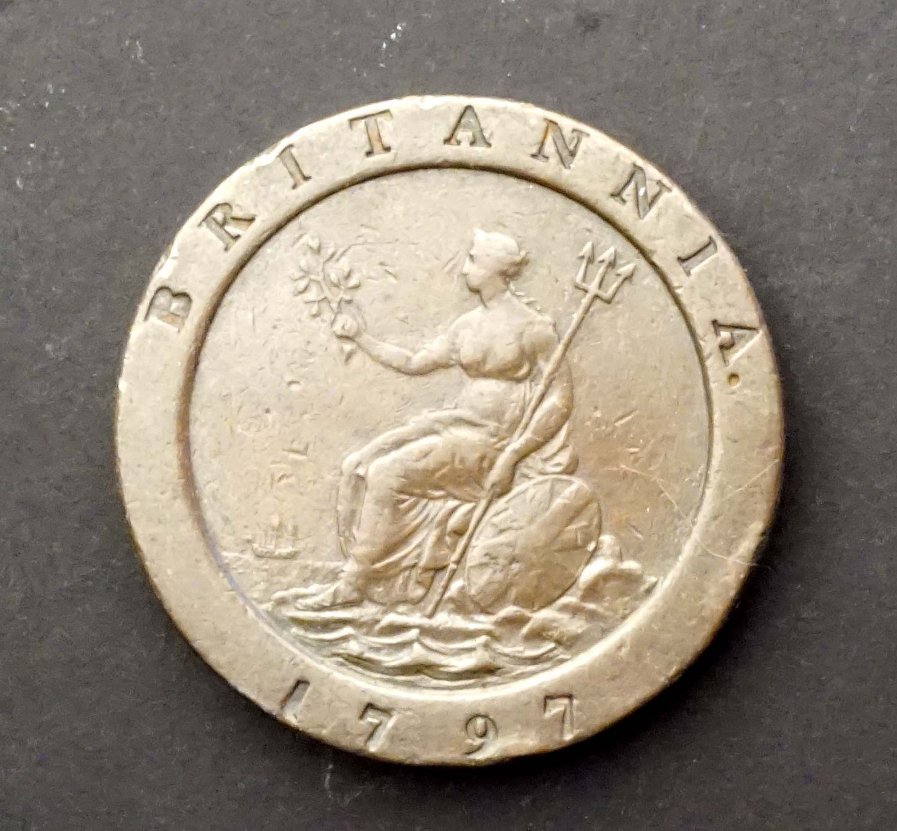 GREAT BRITAIN 1797 George III KM# 619 2 Pence AE-40 56.2 gms. Edge: Plain Very Fine