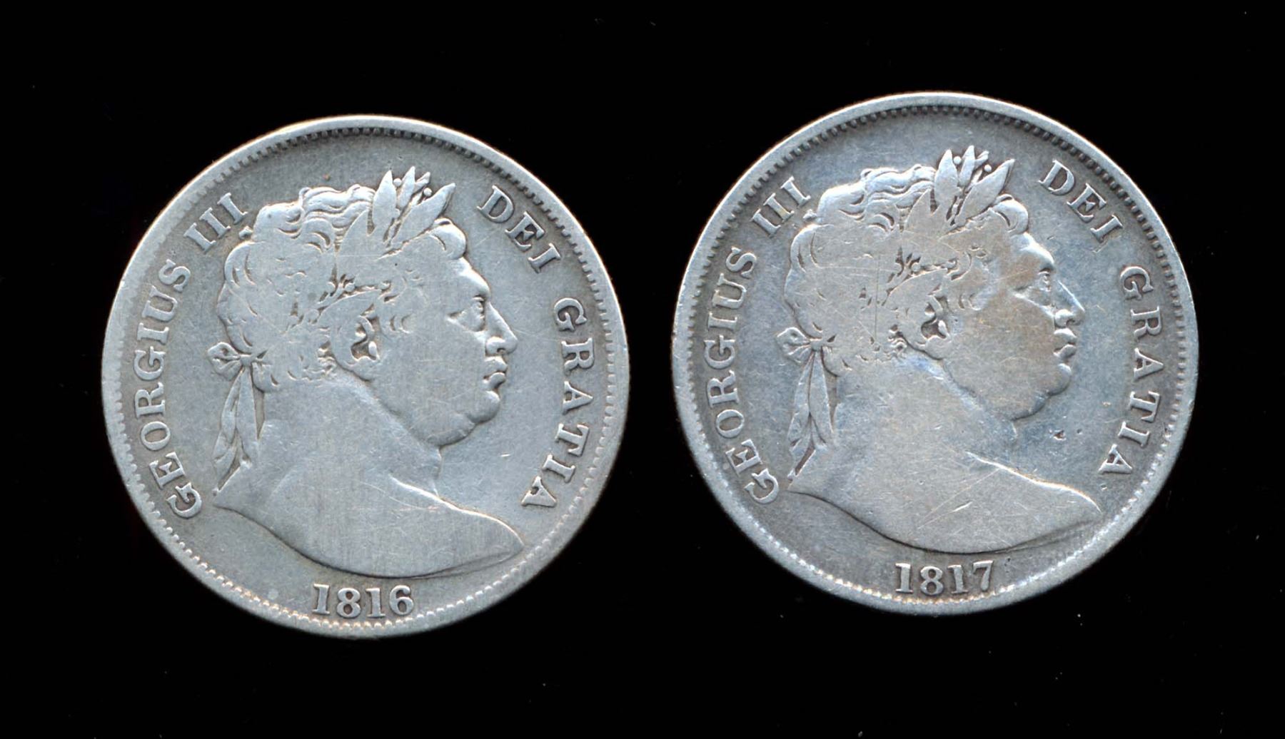 GREAT BRITAIN 1816-1817 KM# 667 Two Half Crowns 27.2 grams Silver
