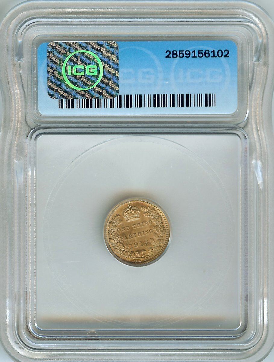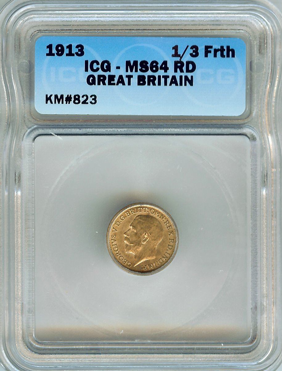 GREAT BRITAIN 1913 1/3 FARTHING KM#823 ICG MS64 RED