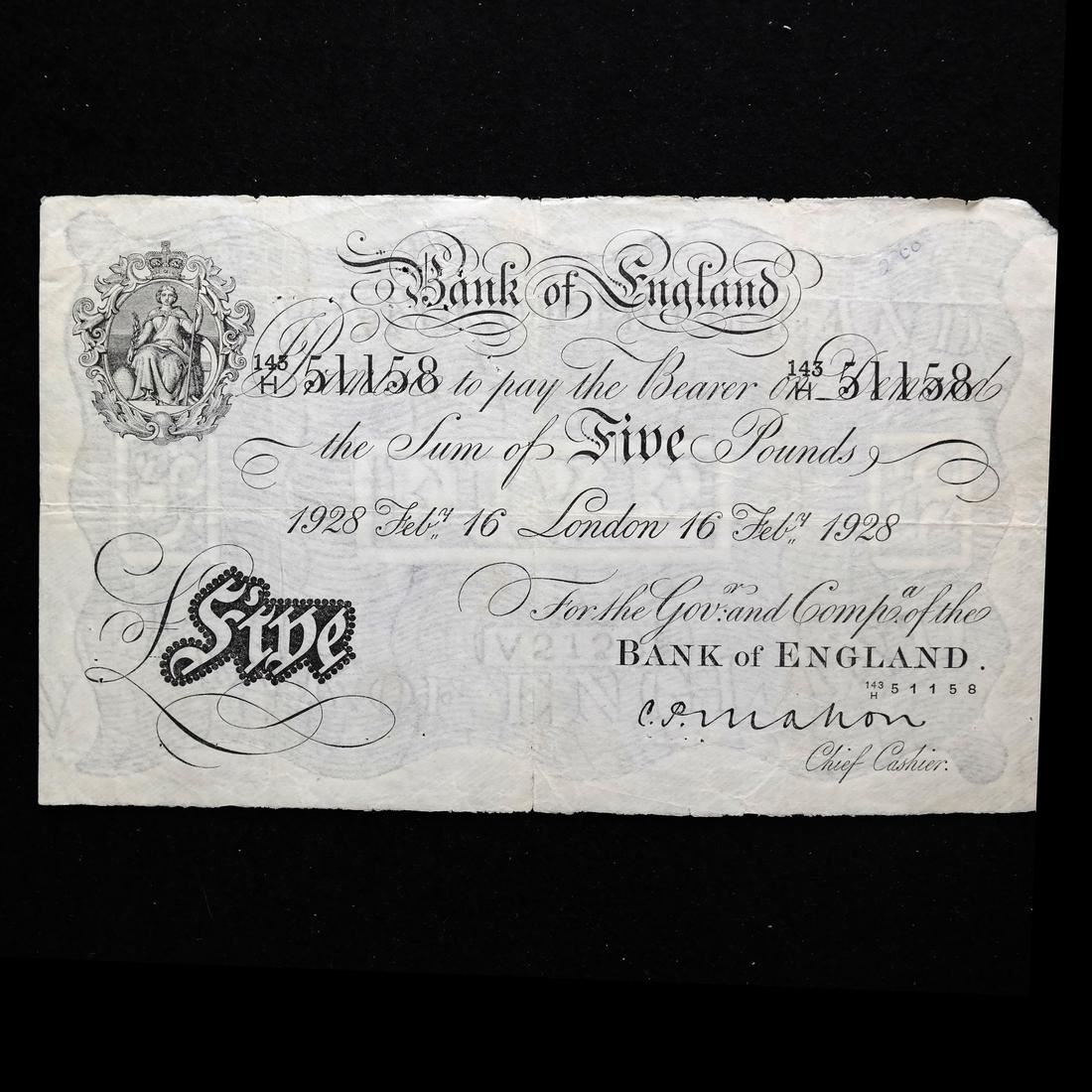 16 February 1928, London, serial #143H 51158, Pick #320a, creases, pinholes and some ink, Fine.