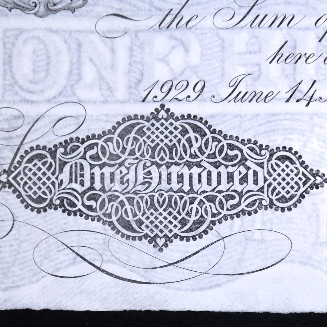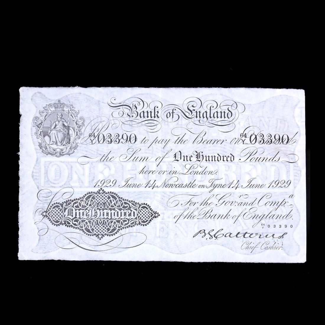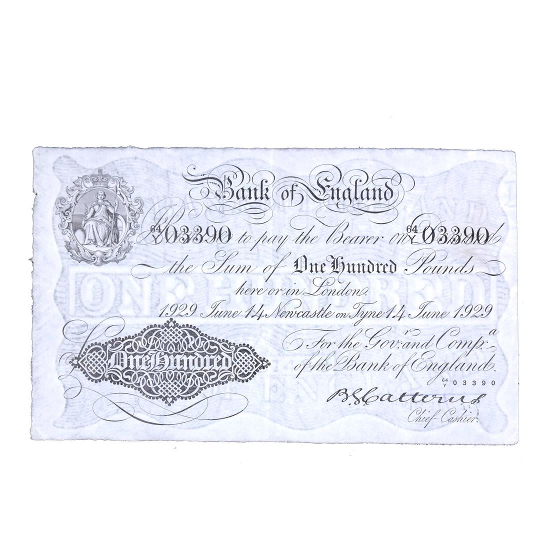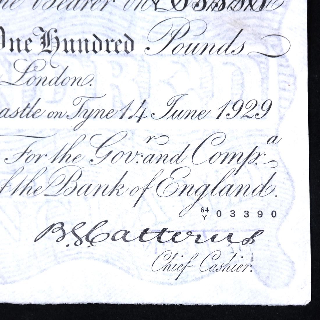 14 June 1929, Newcastle, serial #64Y 03390, Pick #332 variety, light folds and wrinkles, violet boxed MB37/ handstamp on back, sound and Very Fine+.
