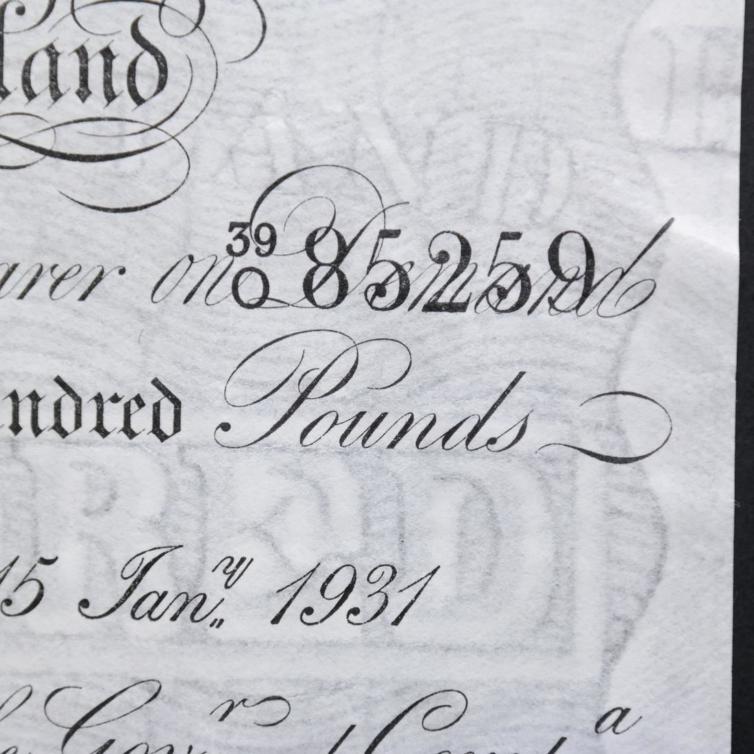 15 January 1931, London, serial #39O 85259, Pick #332, light folds and wrinkles, tiny pencil notation on back, sound and Very Fine+.
