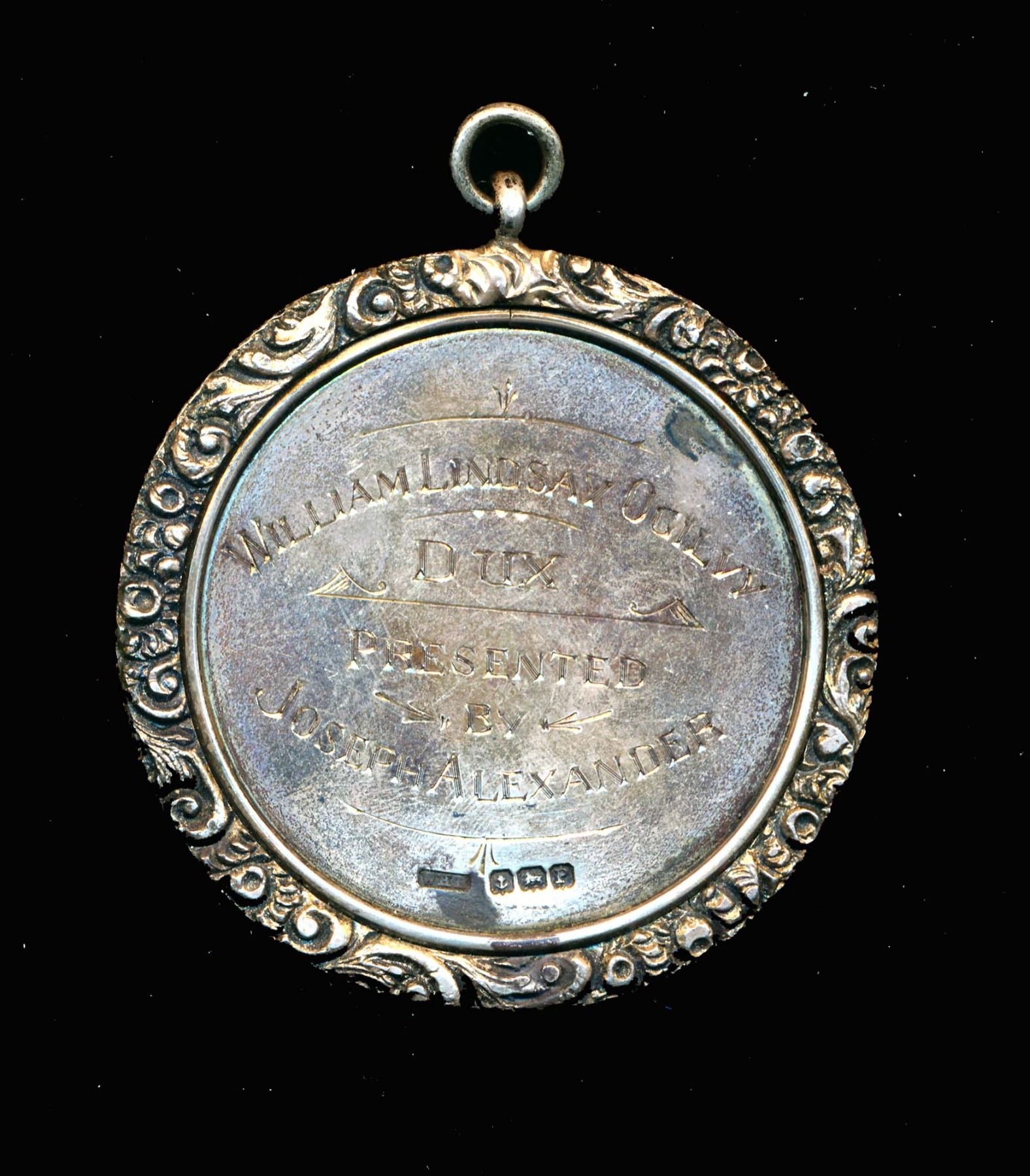 Made by Hamilton and Inches (1866-2021), This Edinburgh Angus Club medal was given to William Lindsay Ogilvy of Kirriemuir High School along with 150 Pound Prize. The medal is sterling silver and weights 32.6 grams.