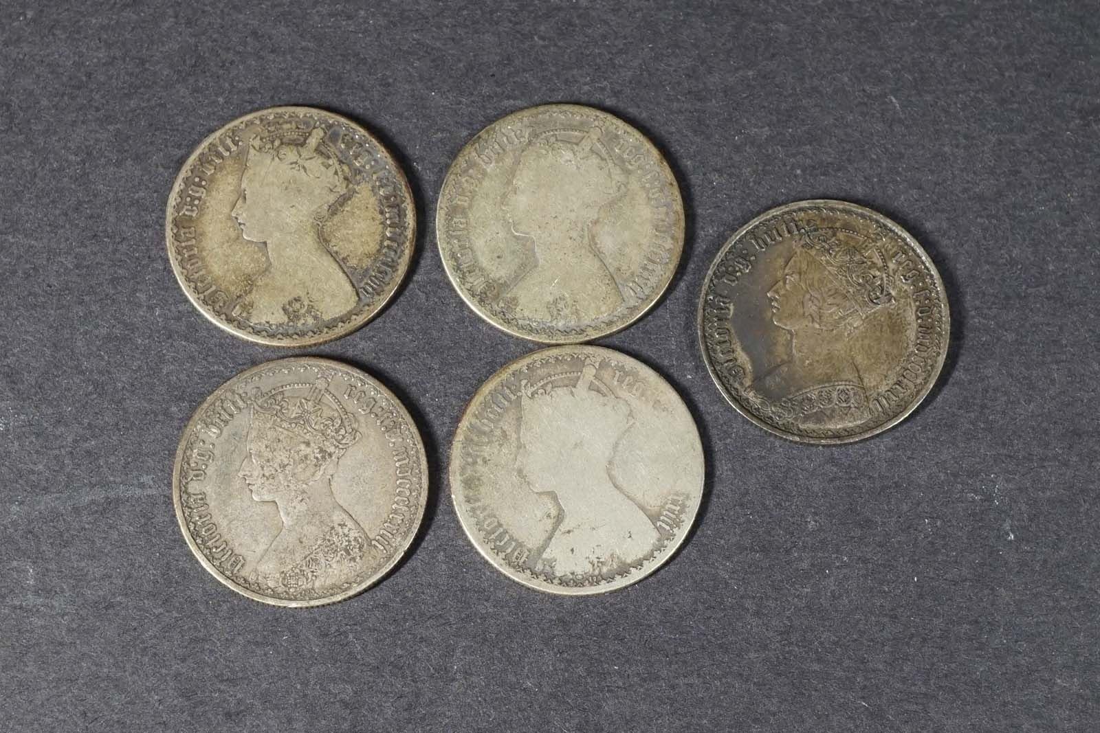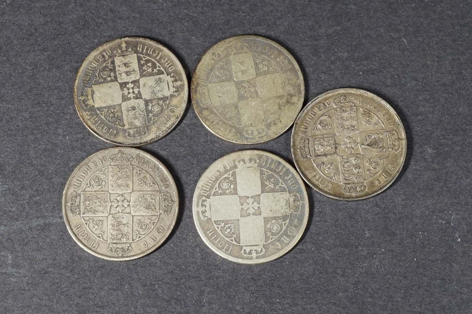 Lot of coins 1868-1873 KM #746 Florins x 5 Pieces AG- Fine 54.3 grams ag