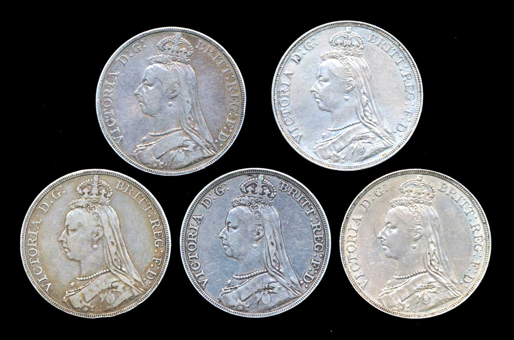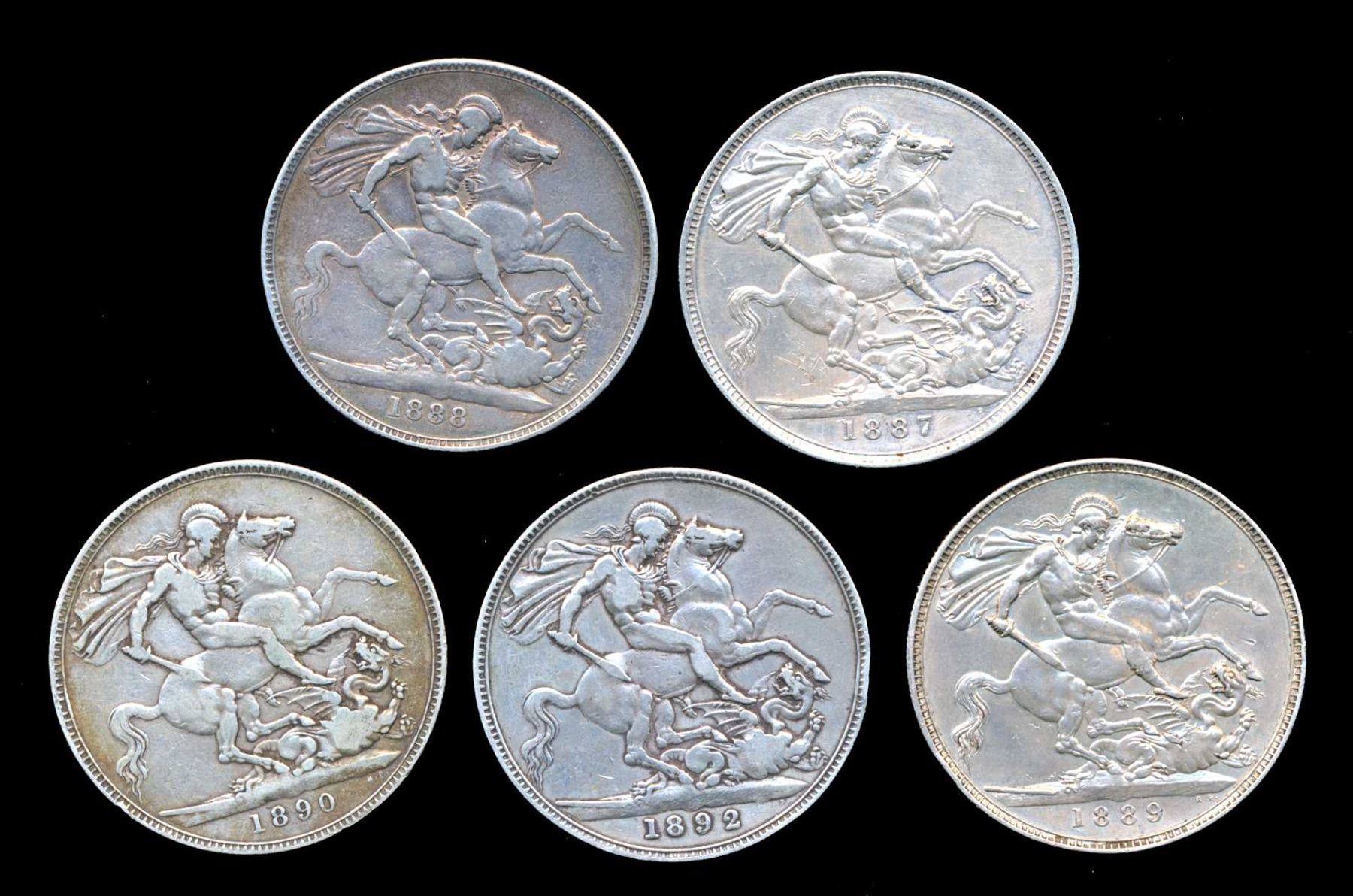 GREAT BRITAIN Crowns 1887-1892. A Lot of 5 Victorian Coins