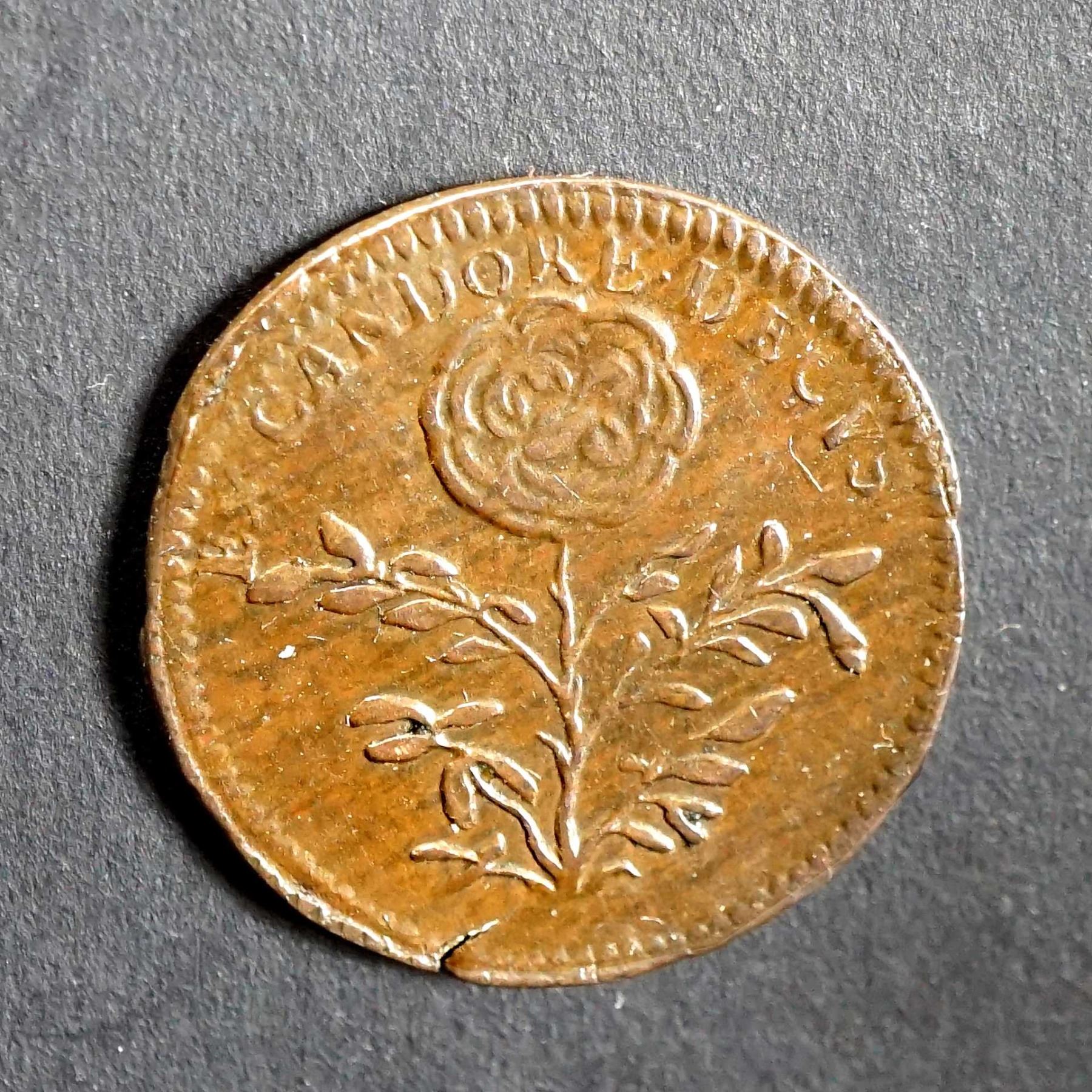 Extremely Rare Rose Pattern Ex Candore AE-22 4.53 gms., Copper with 9:00 O'clock axis with a flan flaw on edge. It appears this example was struck without a collar. Montague 18, Cooke 578 VF