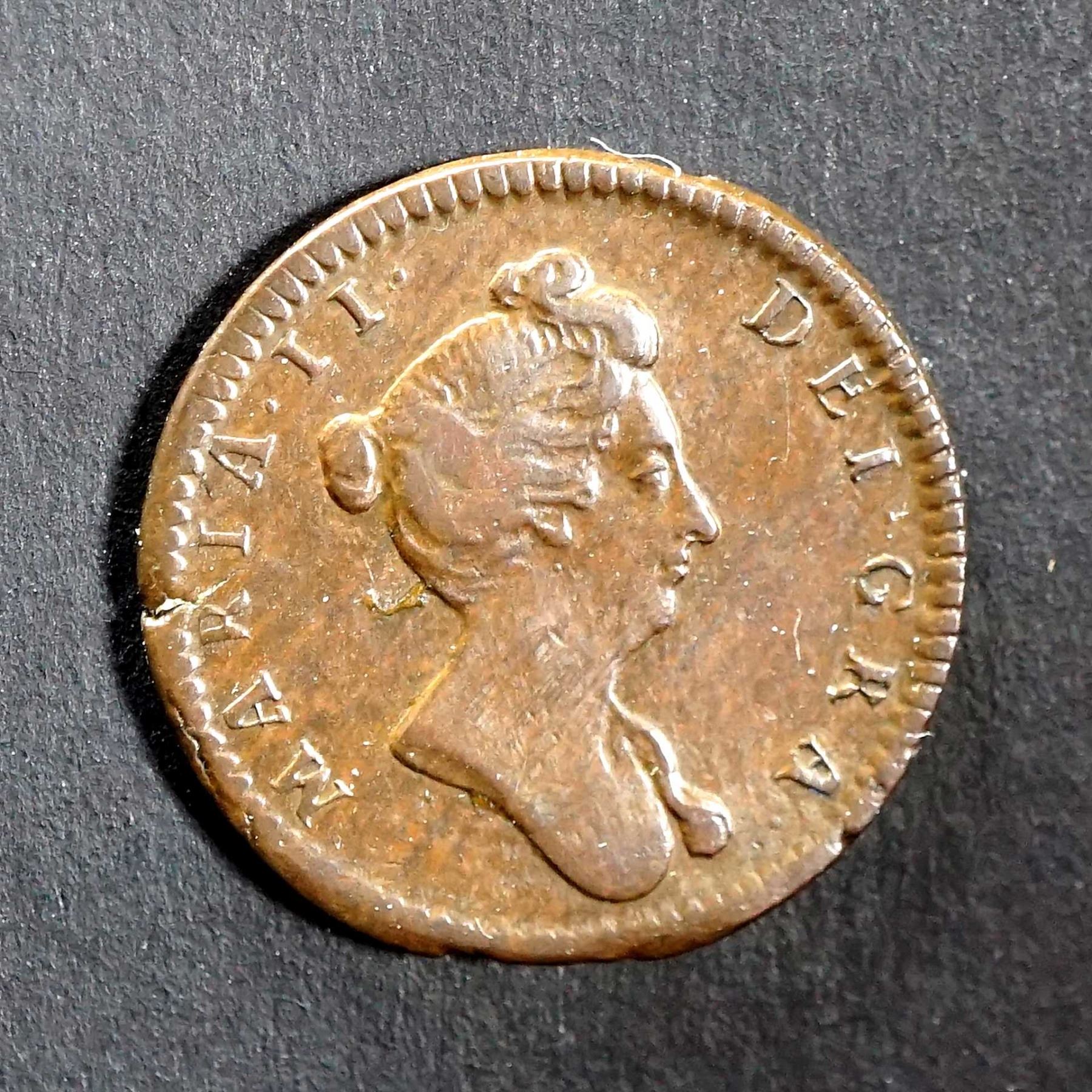 GREAT BRITAIN Farthing 1689 Mary II Pattern Very Fine