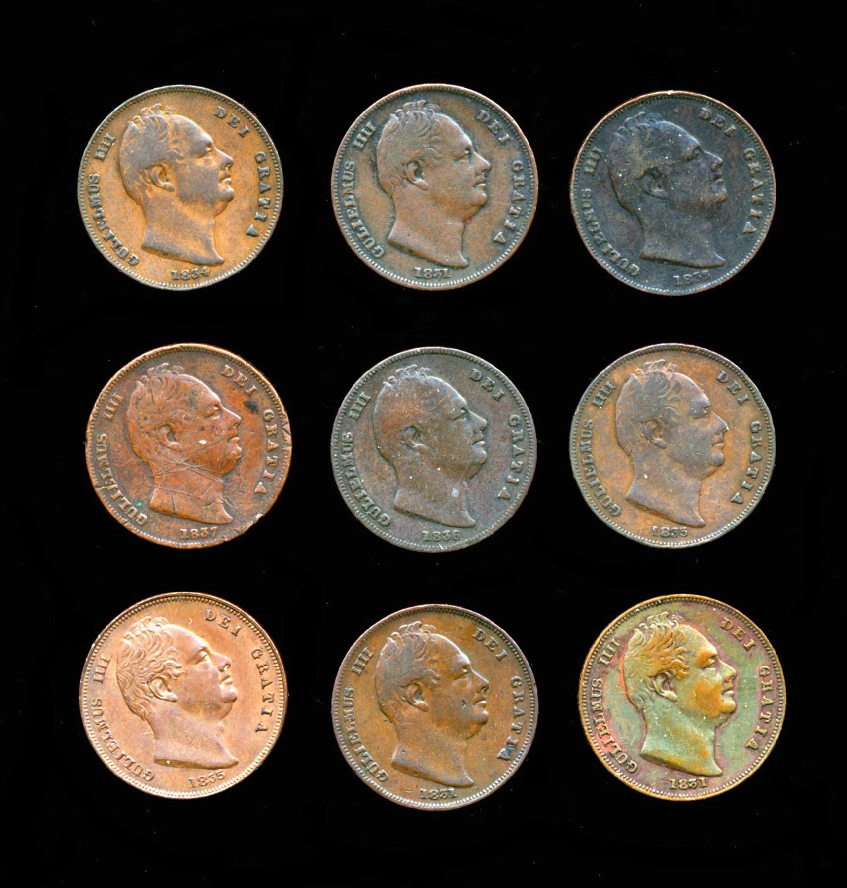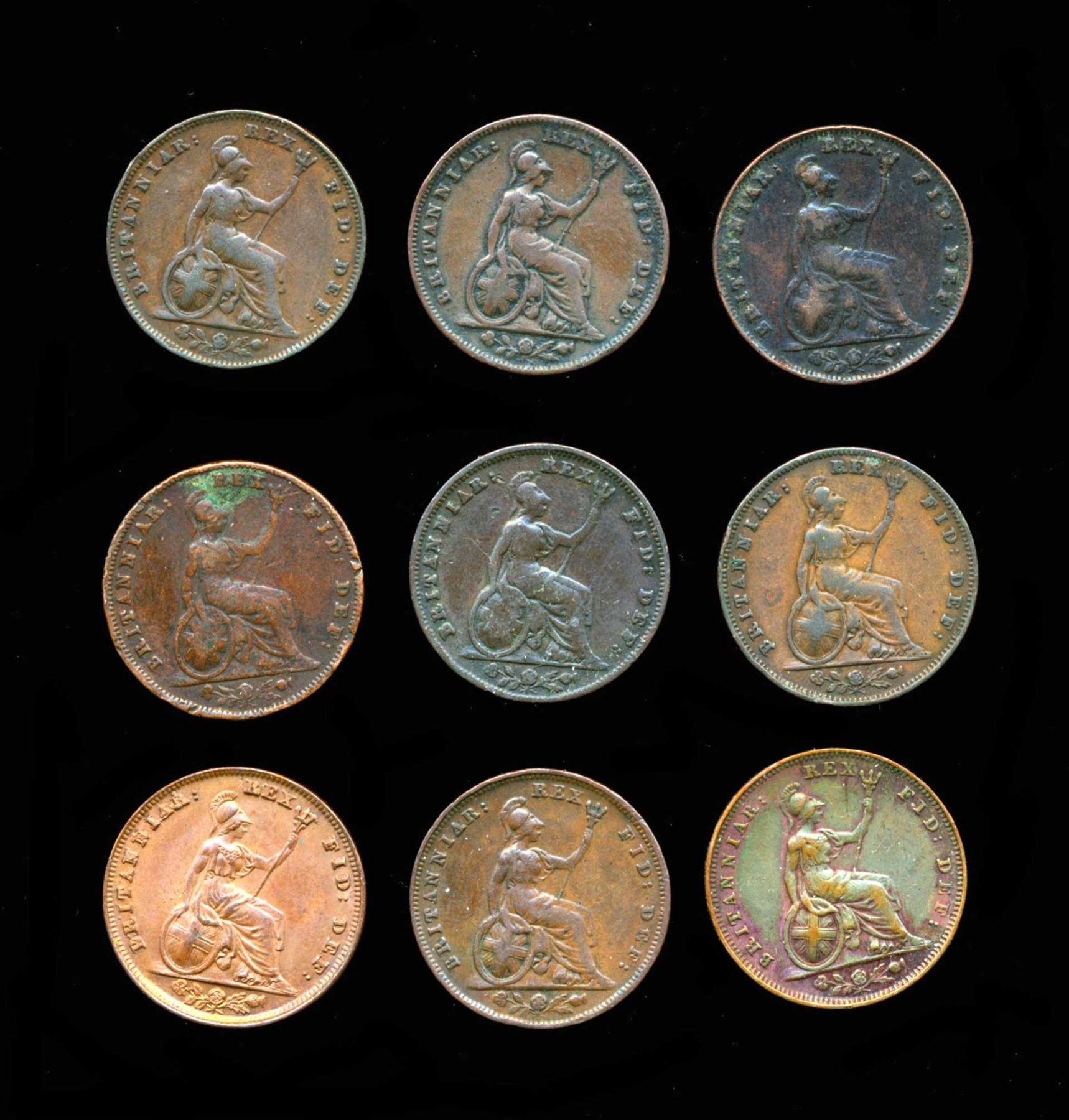 GREAT BRITAIN Farthings 1831-1837. A Lot of 9 Wiiliam IIII Coins Fine-Unc