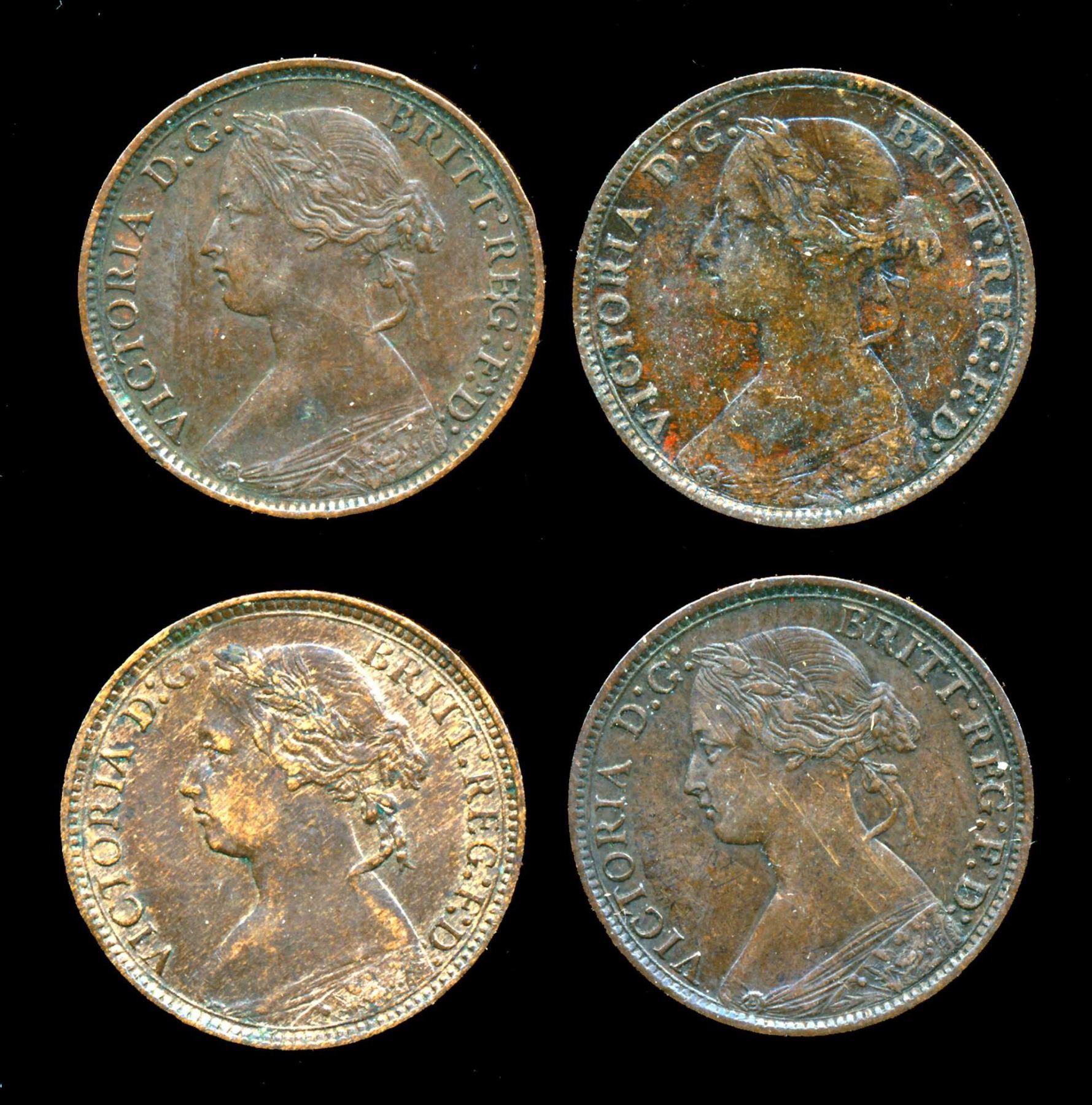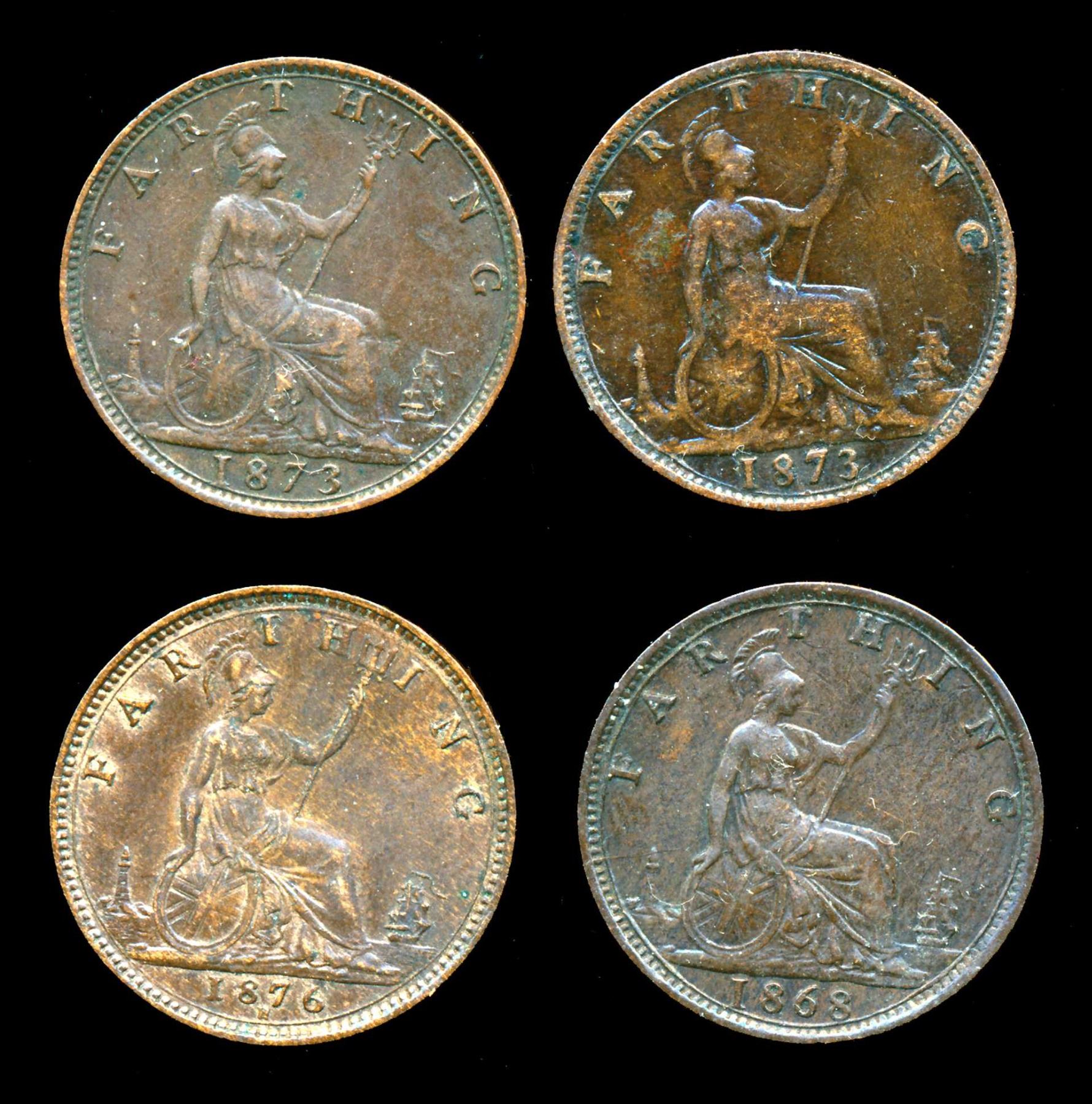 GREAT BRITAIN Farthings 1868-1876. A Lot of 4 Victorian Coins Very Fine-Extra Fine