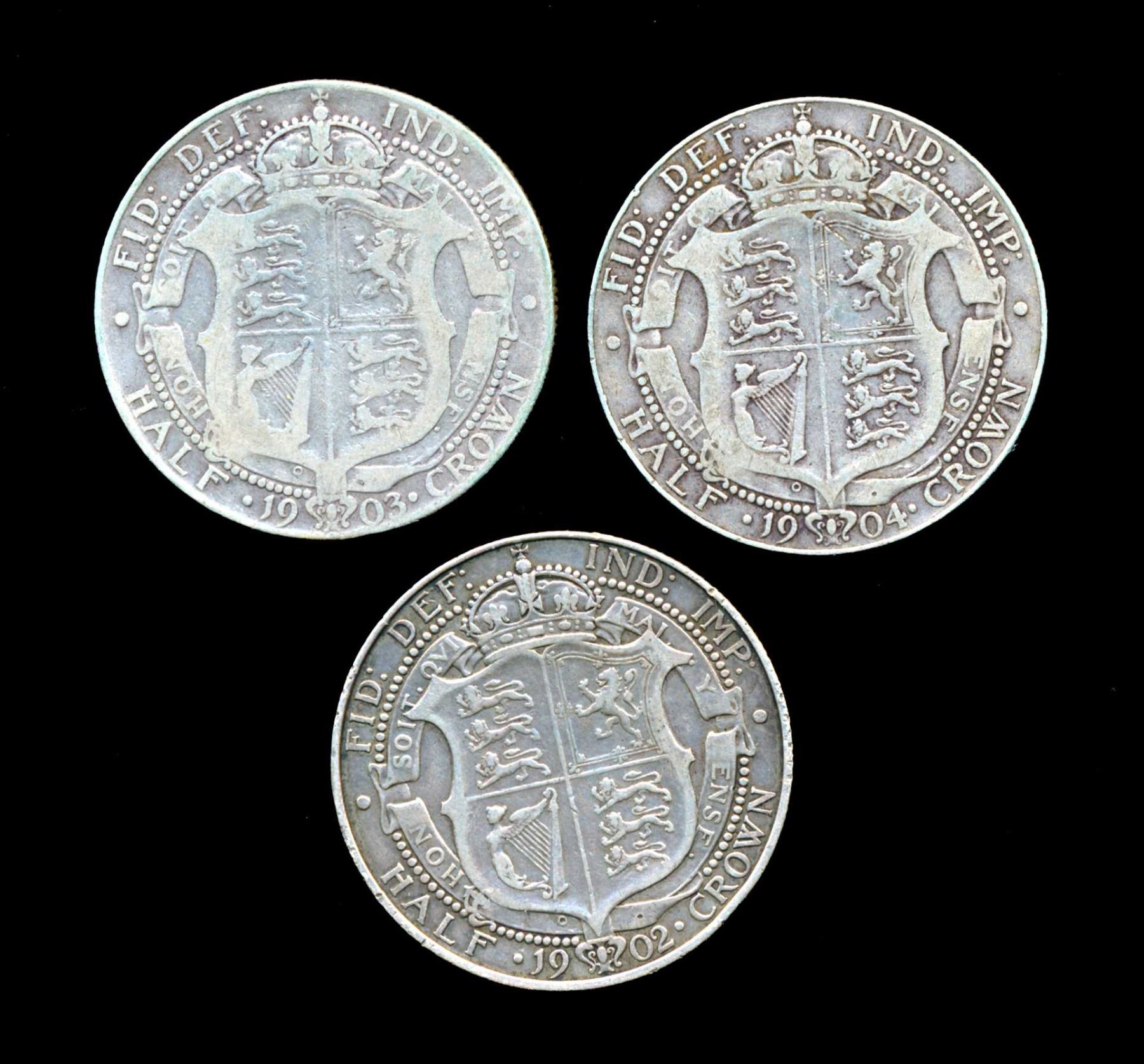 GREAT BRITAIN Half Crown 1902-1904. A Trio of Edward VII Coins