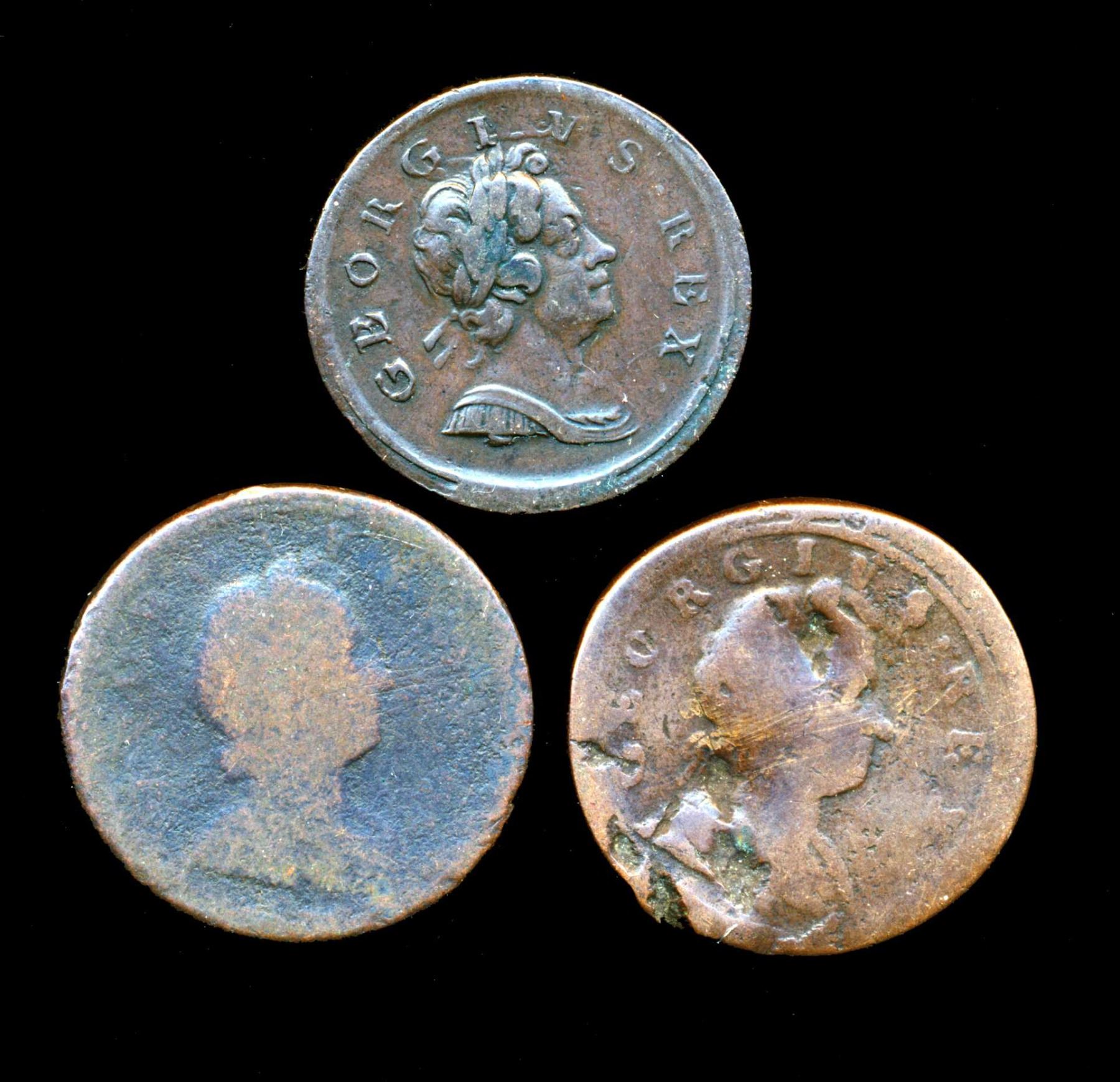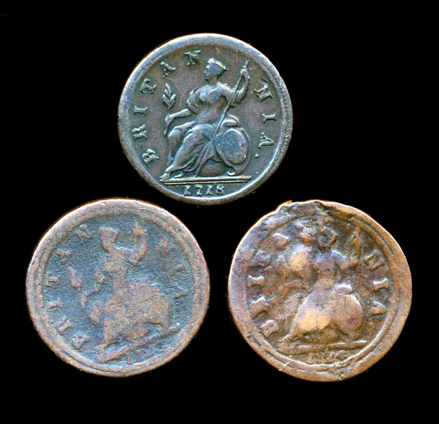GREAT BRITAIN Half Penny 1718-1724. A Lot of 3 Coins Good-Very Fine