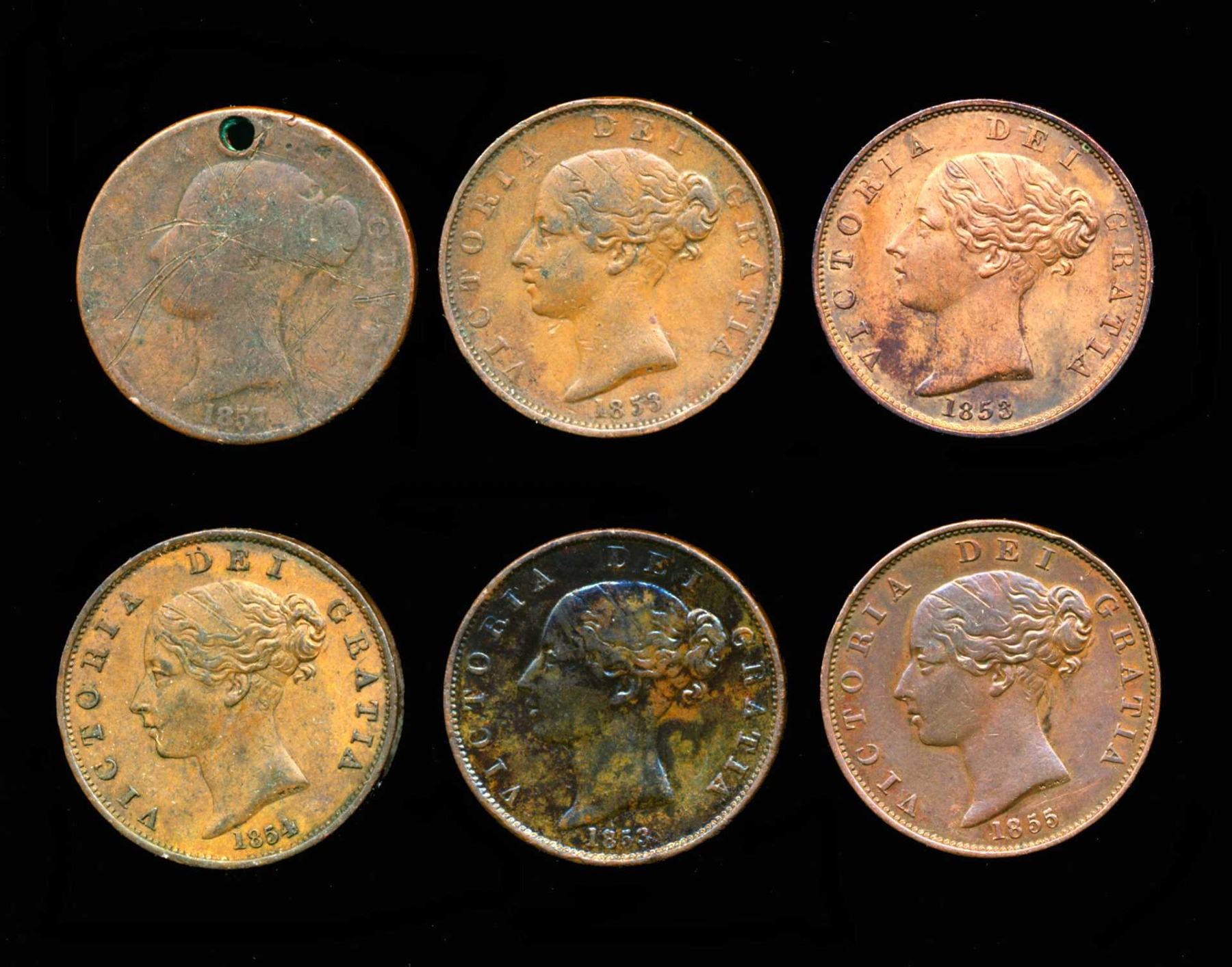 GREAT BRITAIN Half Penny 1853-1857. A Lot of 6 Coins Very Good-Very Fine