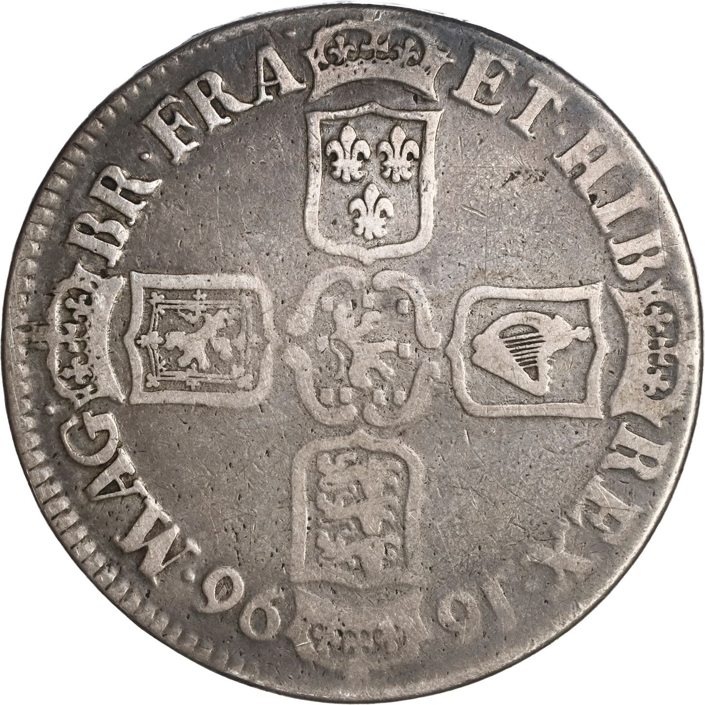 GREAT BRITAIN, London, crown, Willliam III, 1696, OCTAVO on edge.