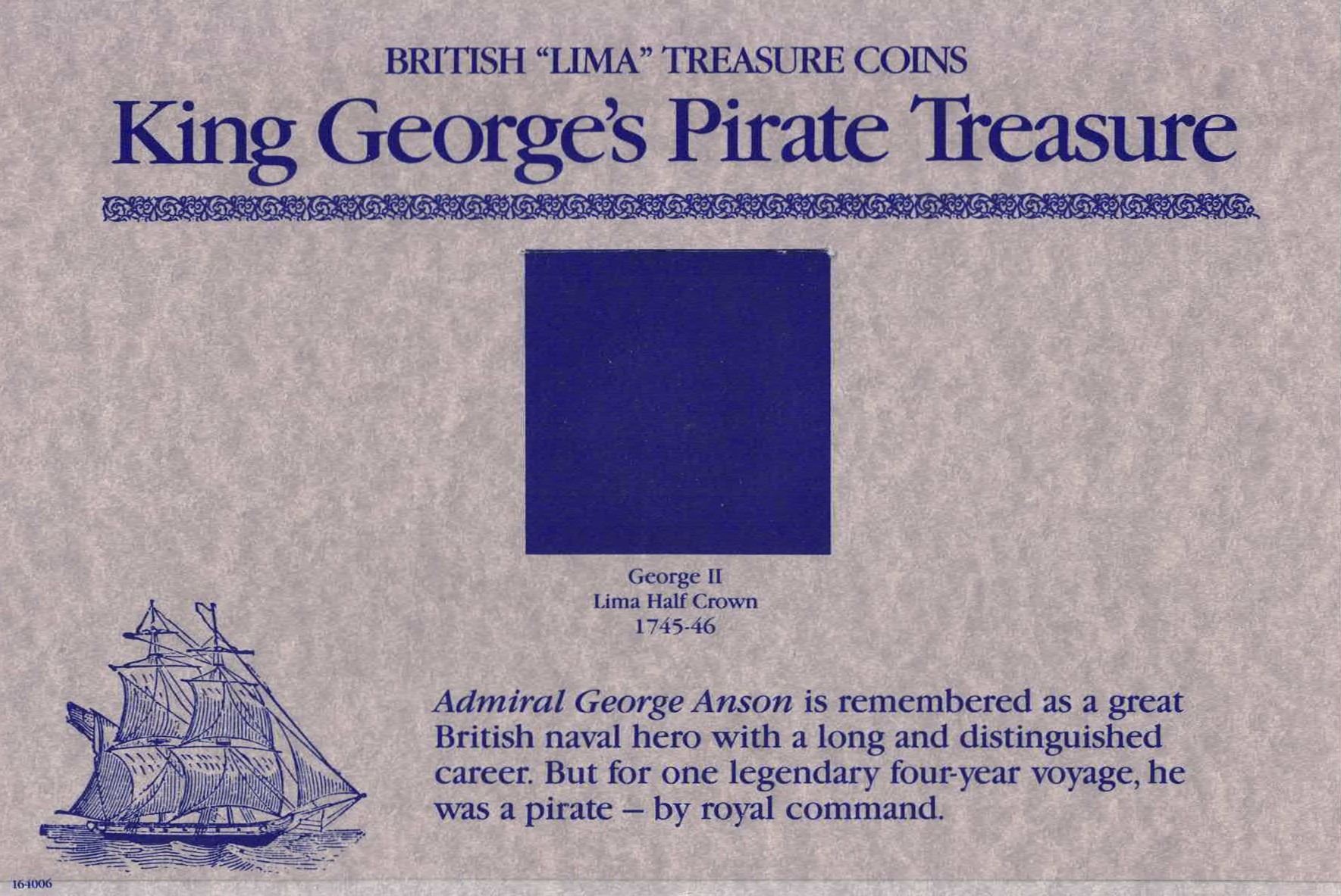 GREAT BRITAIN, London, half crown, George II, 1745, with LIMA below bust as made from captured Peruvian silver. Sp-3695; KM-584.3. 14.60 grams. Popular type commemorating the capture of tons of Spanish Peruvian silver and gold on the French ships Louis Erasmus and Marquis d'Antin in the North Atlantic by English Captains Morecock and Talbot on their privateer ships Duke and Prince Frederick (not, as commonly told, related to Commodore Anson's successes in the Pacific). Fine example with light surface hairlines, some retained luster with golden and blue toning. Housed in a large folio-type certificate.