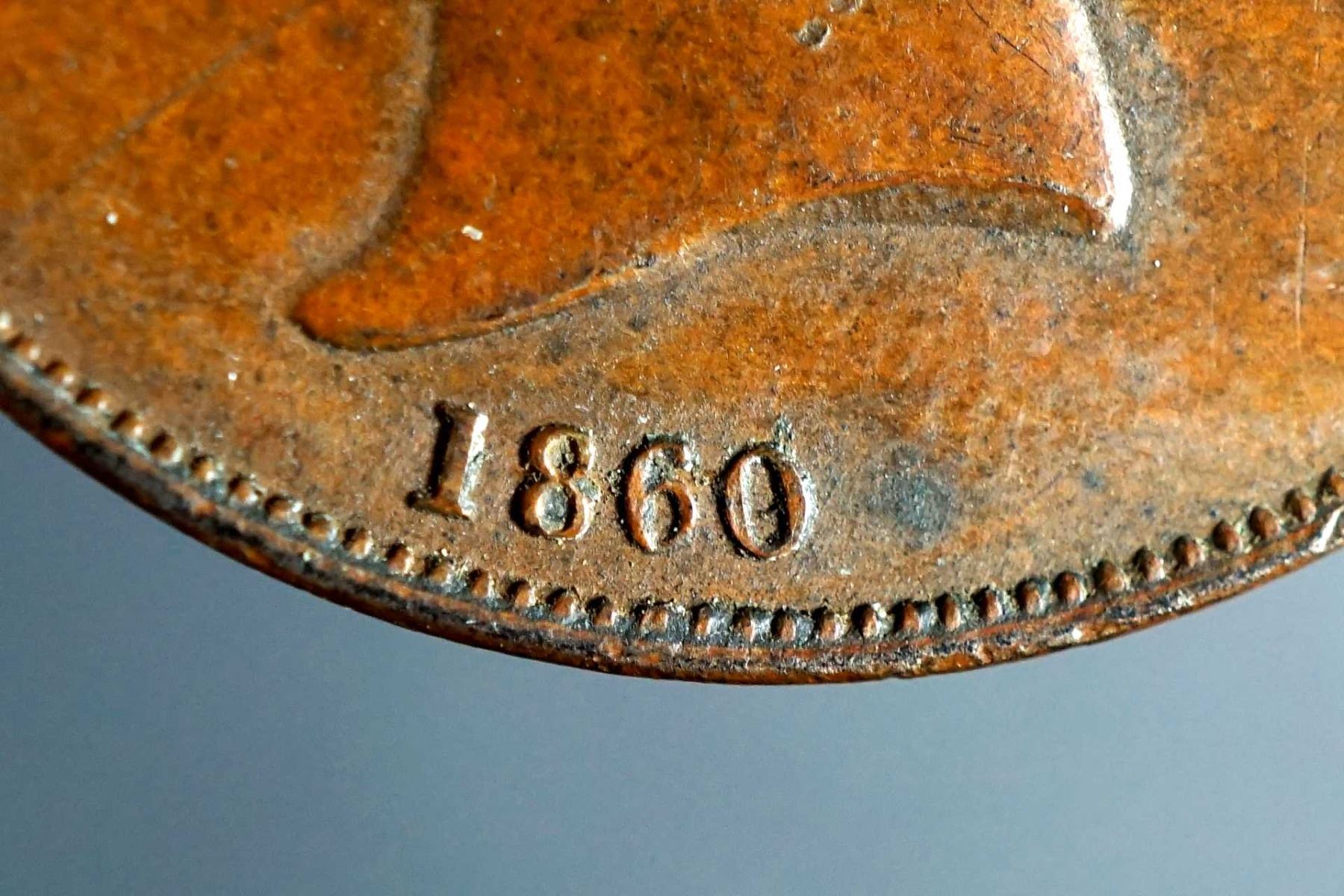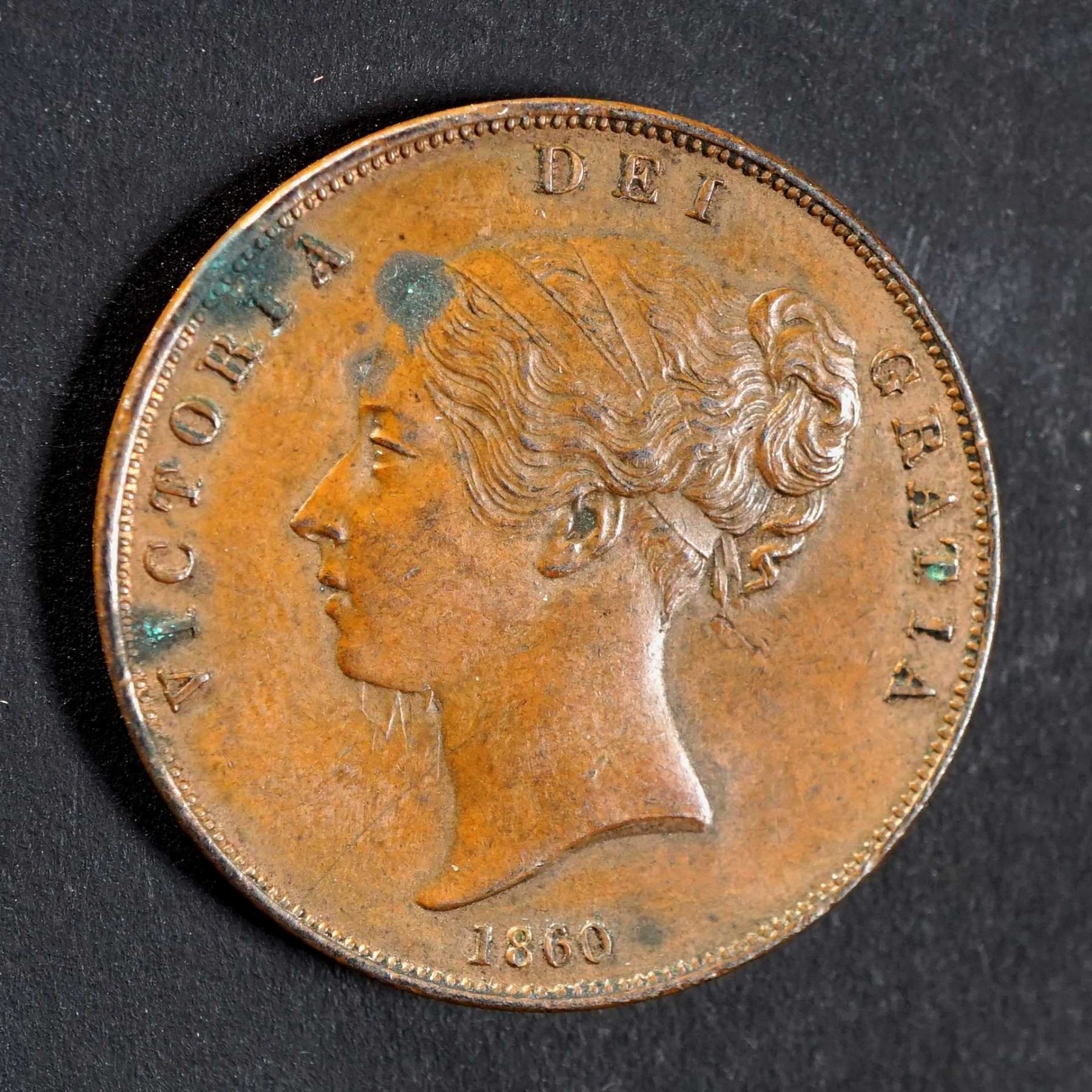 GREAT BRITAIN Penny 1860 over 1859 Error Coin Very Fine