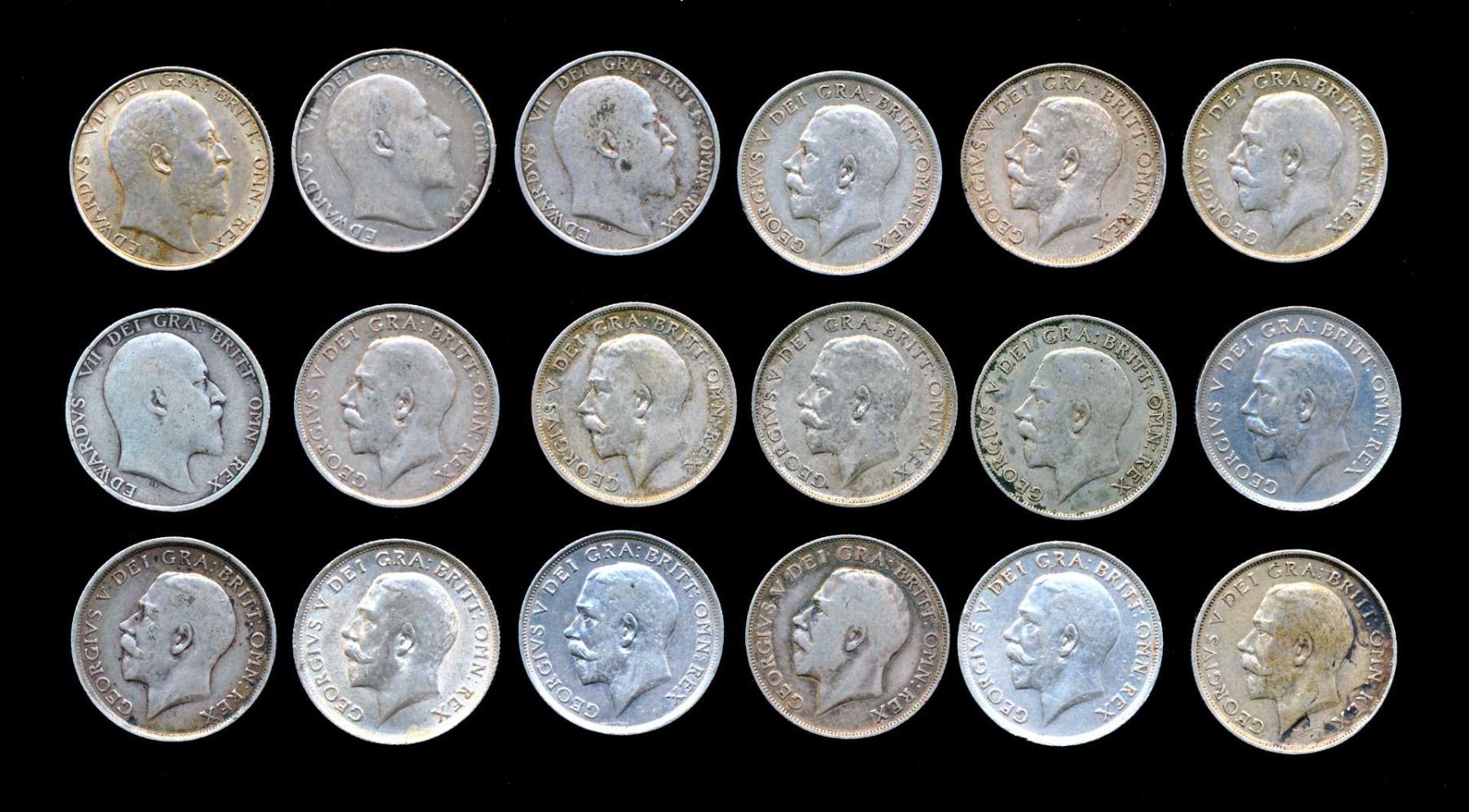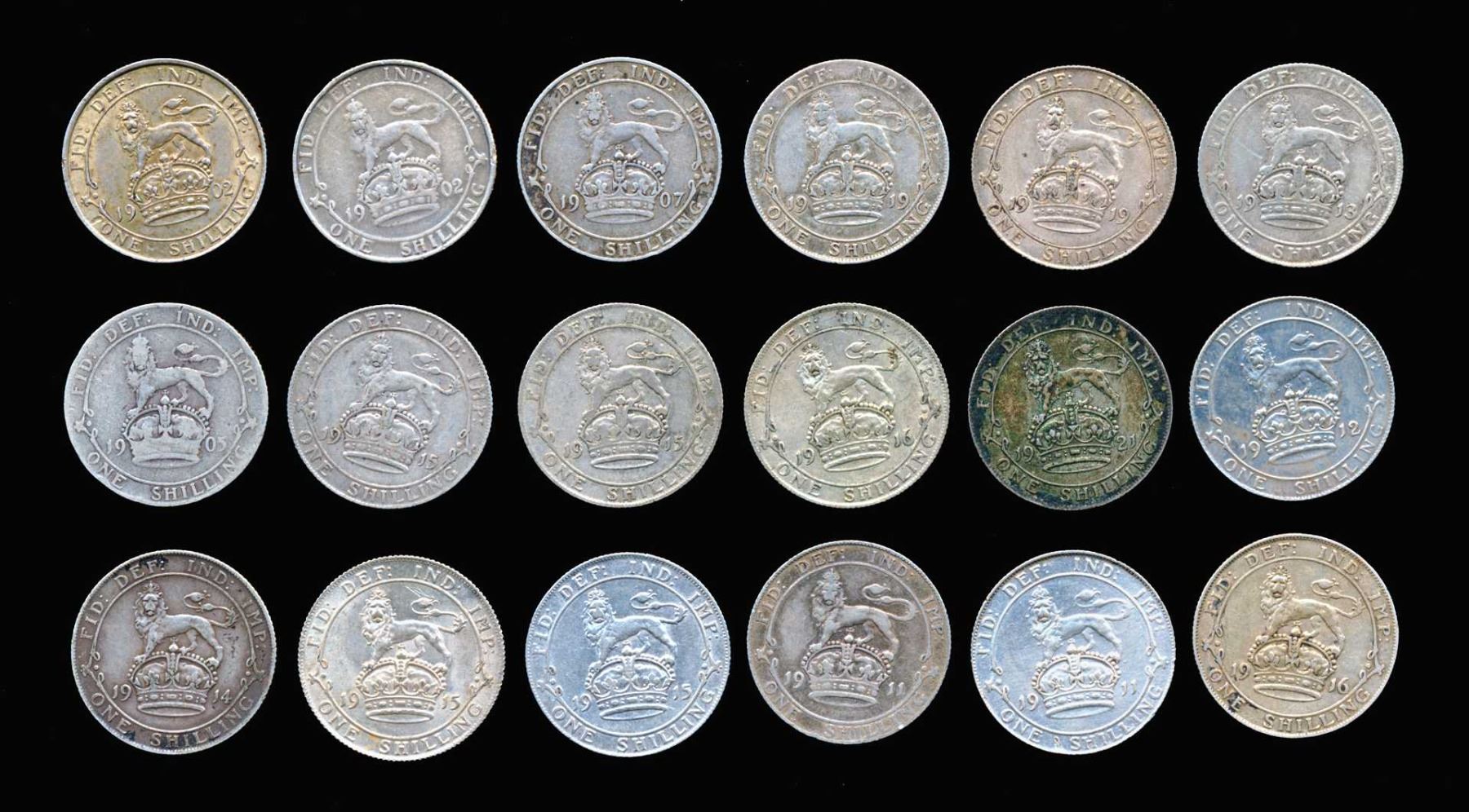 GREAT BRITAIN Shilling 1902-1921. A Lot of 18 Victorian Coins Very Good-Extra Fine