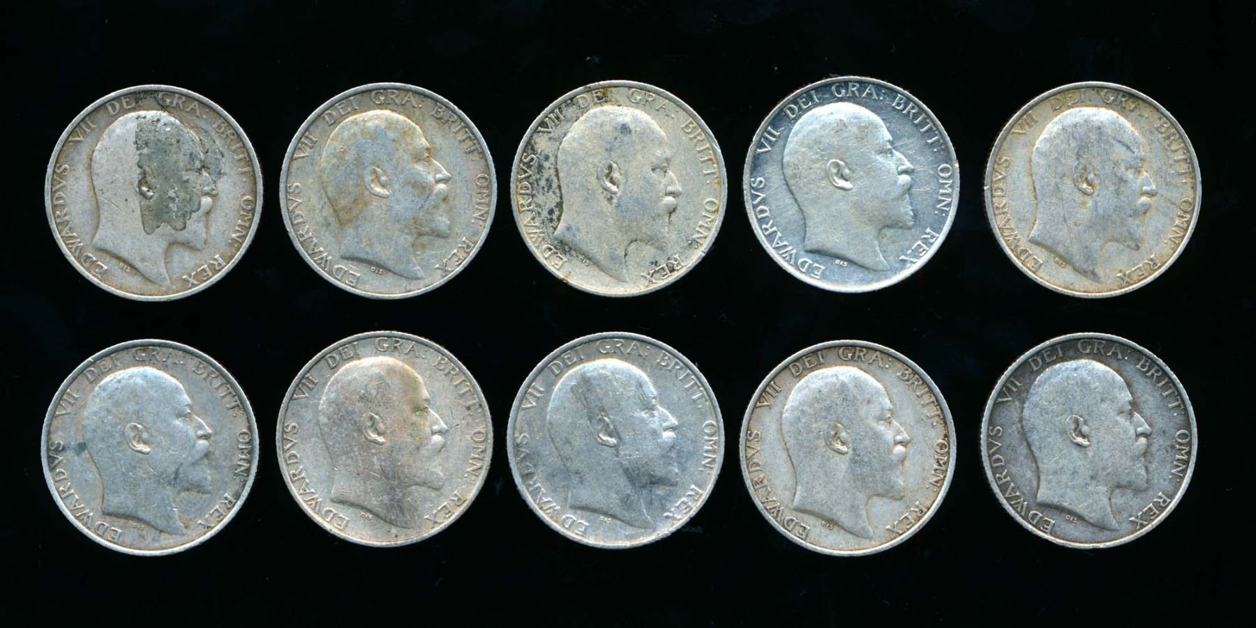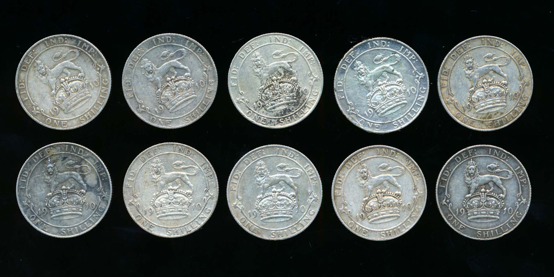 GREAT BRITAIN Shilling 1910 Edward VII. KM# 800. A Dealer Lot of 10 Pieces F-VF