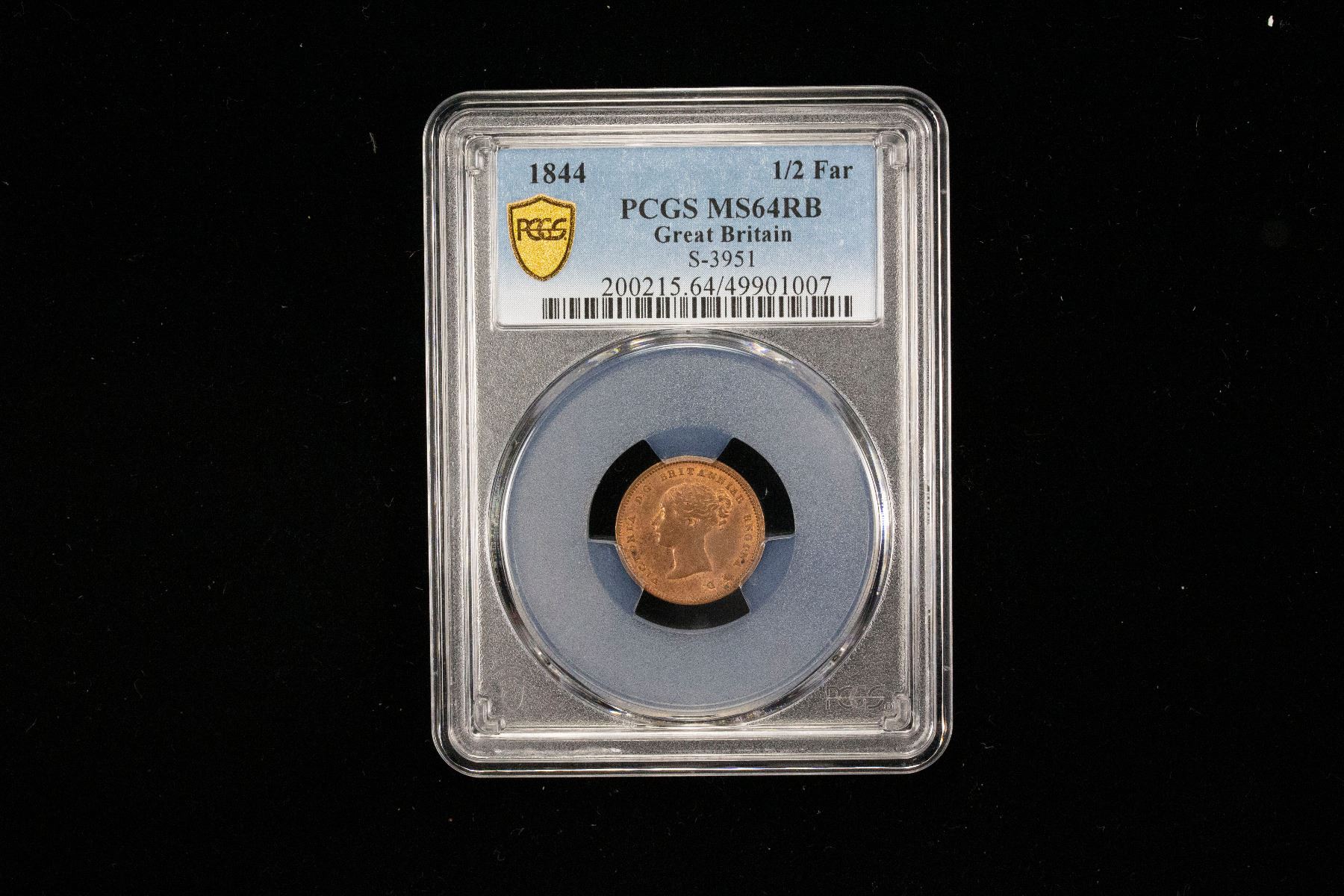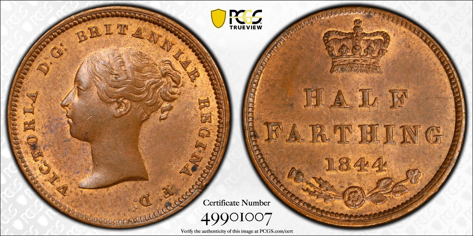 GREAT BRITAIN: Victoria, 1837-1901, AE 1/2 farthing, 1844, PCGS MS64 RB