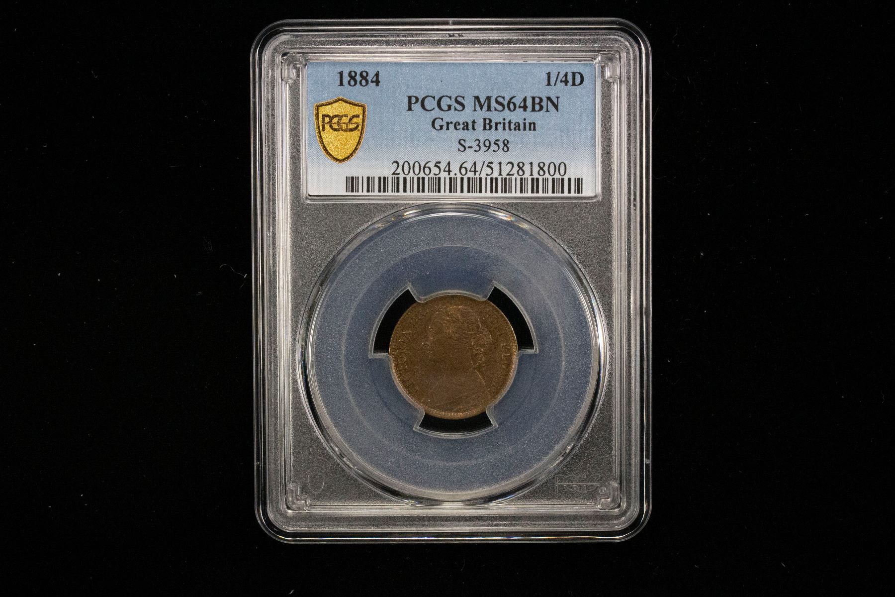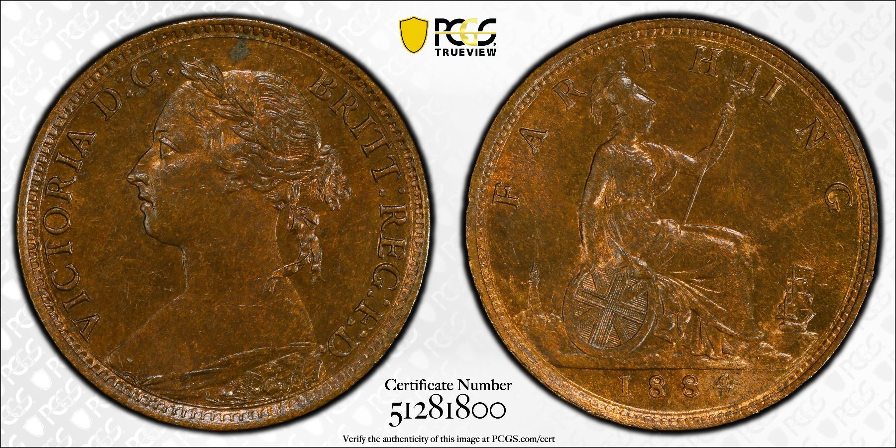 GREAT BRITAIN: Victoria, 1837-1901, AE farthing, 1884, PCGS MS64 BN