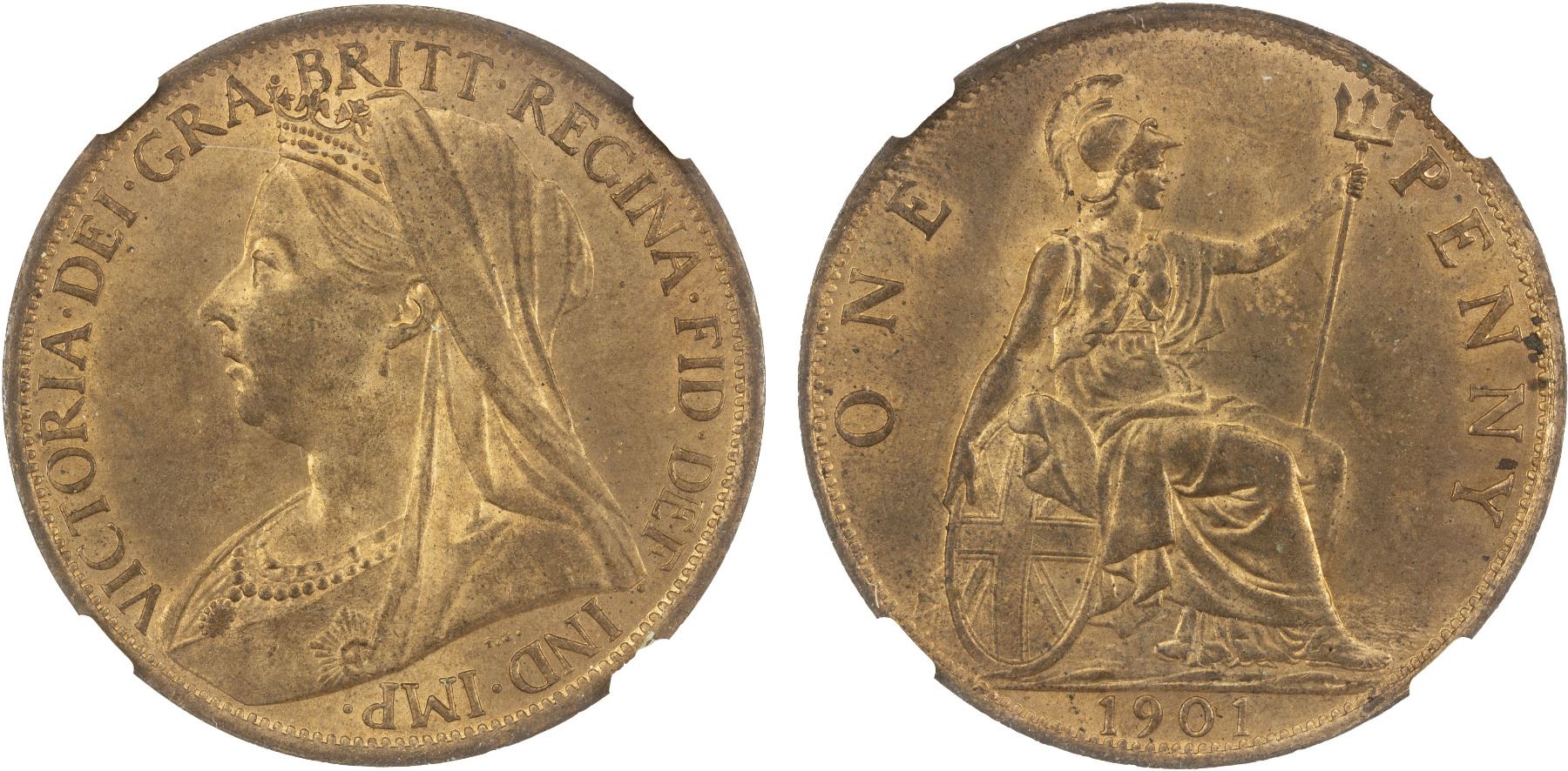GREAT BRITAIN: Victoria, 1837-1901, AE penny, 1901, NGC MS64 RB
