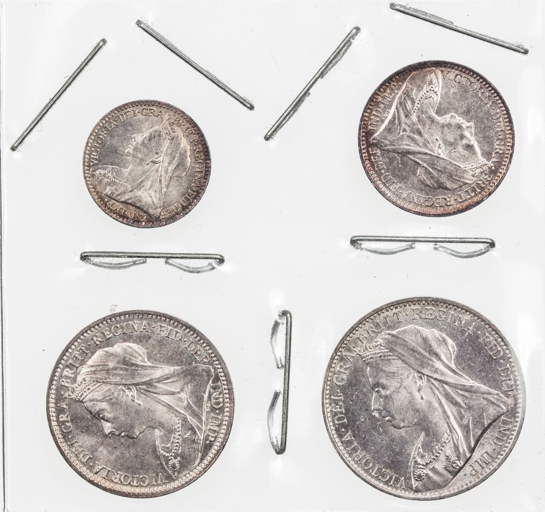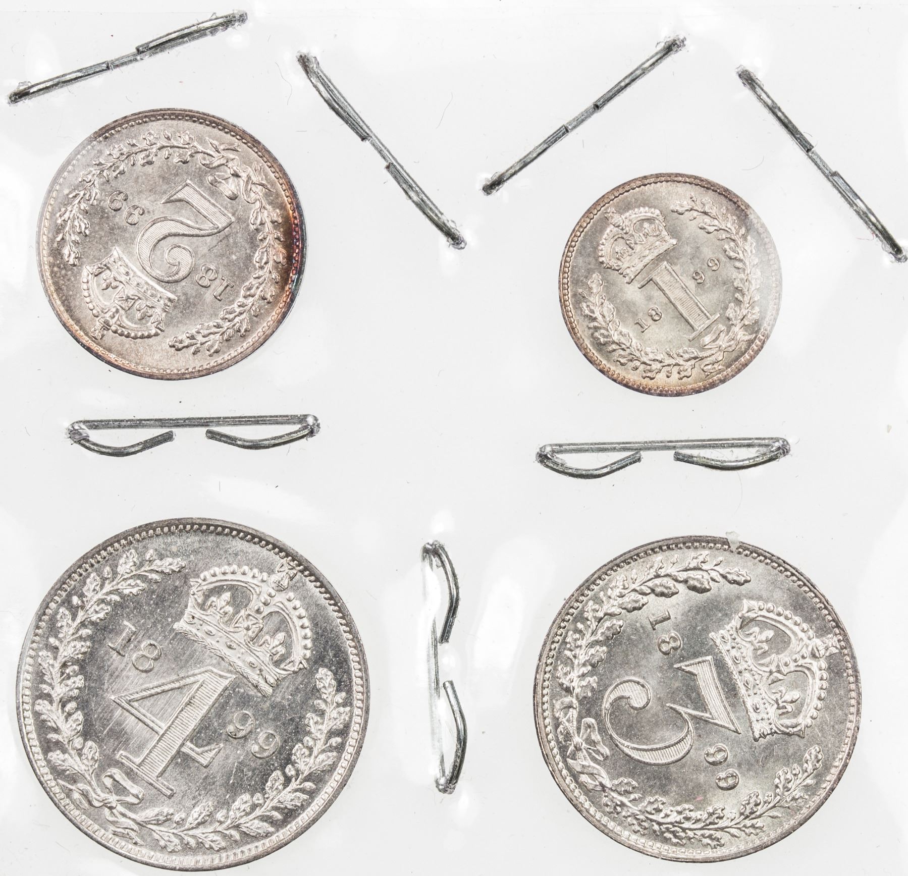 GREAT BRITAIN: Victoria, 1837-1901, AR maundy set, 1899, KM-MDS155, Spink-3943, gem set except for a few hairlines on the fourpence, nice peripheral tone on the penny and twopence, mintage of only 8,976 sets, Choice UNC, S.