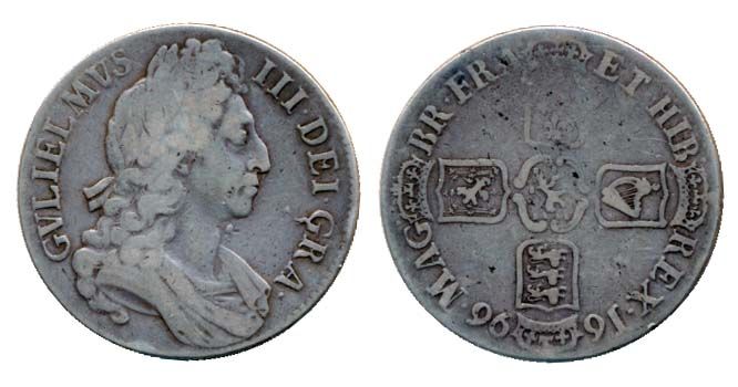 Crown. 1696. Octavo. KM#494.1. Spink-3472. Fine. Even light toning.