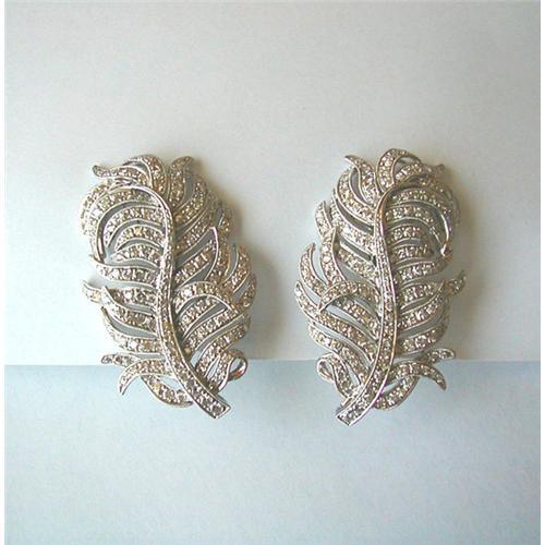 BURTON BROOK FARM ANTIQUES presents a spectacular pair of diamond feather earrings set in 18k white gold with 340 round diamonds approx. 3.90 cts. The earrings have a clip back and a pin for pierced ears. These stunning earrings are 1 3/4" long & 1 1/8" wide.