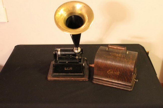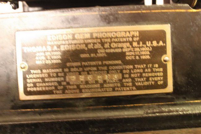 GREAT EDISON GEM CYLINDER PLAYER IN ORIGINAL CONDITION WITH ORIGINAL HORN - WORKS PERFECT #226213 - PAT. DATE 1905 - 10 X 8 X 7.5