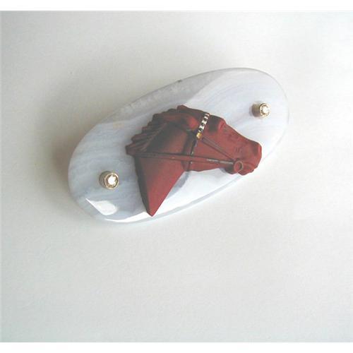 <tr><td>Title:GREAT ESTATE AGATE & ENAMEL & DIA. "HORSE HEAD"</td></tr>