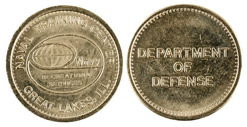 NAVAL TRAINING CENTER / (Globe) NAVY / RECREATIONAL / SERVICES / GREAT LAKES, ILL. // DEPARTMENT / OF / DEFENSE Nickel alloy/WM 23mm Cunningham-IL180(page106) as a Movie Token