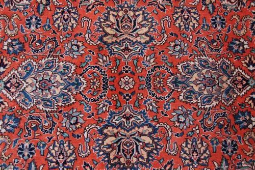GREAT LOOKING ALLOVER FLORAL SAROUK DESIGN, SIZE 11.5 X 8.2 FEET, MADE OF FINE QUALITY LAMB'S WOOL PILE ON COTTON FOUNDATION, ALL NATURAL VEGETABLE DYE, INCORPORATING A BEAUTIFUL ALLOVER FLORAL PATTERN ON A RED BACKGROUND AND FINISHED OFF BEAUTIFULLY BY AN INTRICATELY DONE FLORAL BORDER. HAND WOVEN IN India.