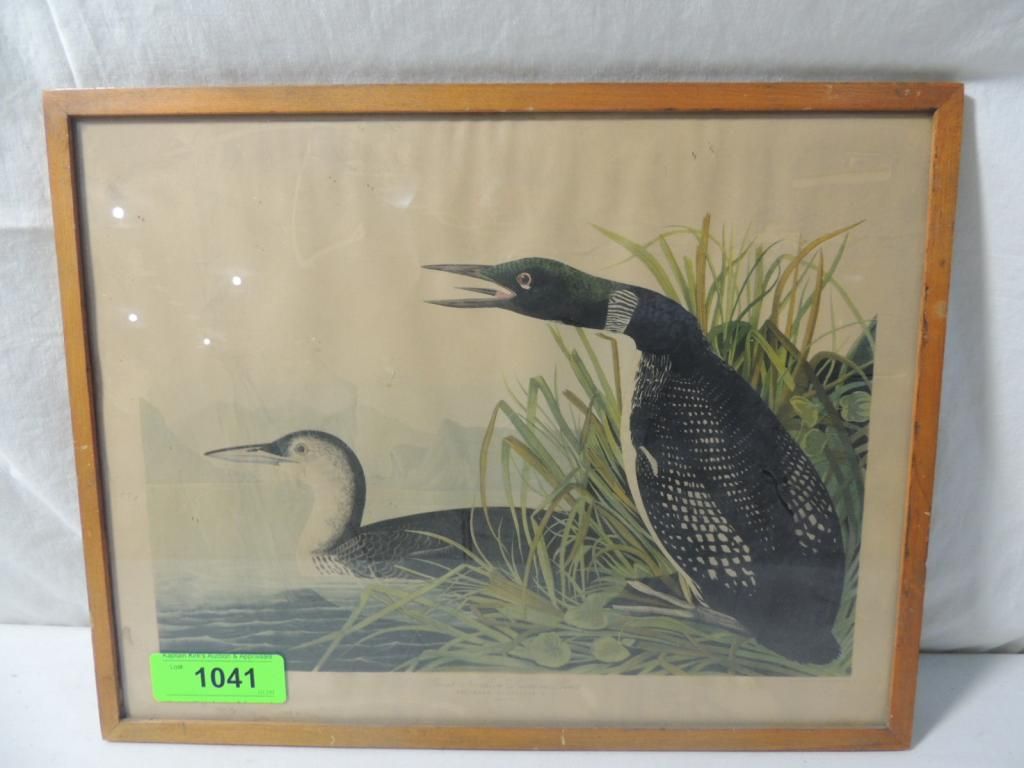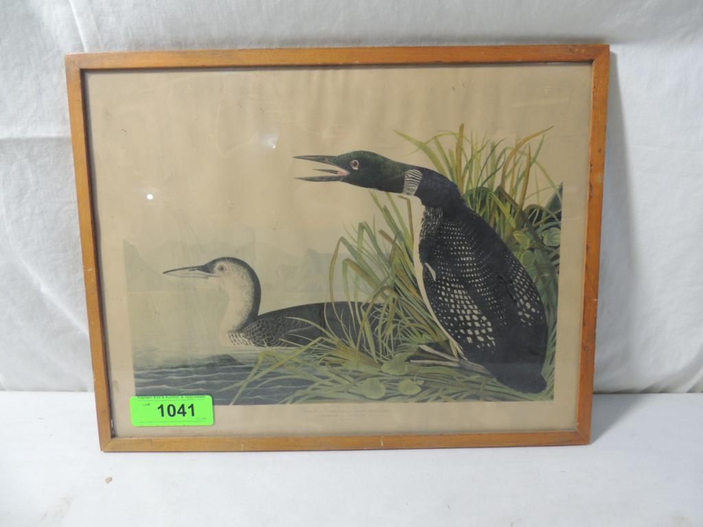 VINTAGE NATURE PRINT GREAT NORTHERN DIVER OR LOON PRINT. COLYMBUS GLACIALIS FRAMED. DECORATIVE FRAMED ART. AS SHOWN SEE PHOTO FOR MORE DETAILS.