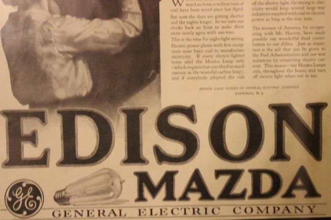 GREAT PIECE OF 1918 ADVERTISING EDISON LIGHT BULBS FROM G.E.