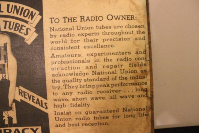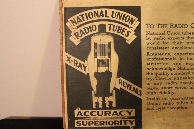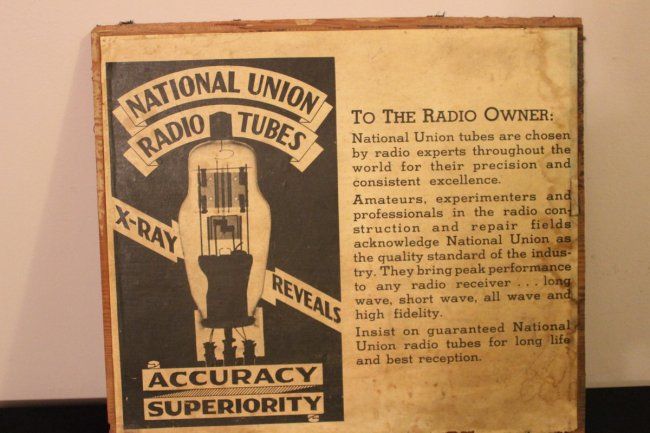 GREAT PIECE OF RADIO TUBE ADVERTISING 17.5 X 16 - MOUNTED ON WOOD