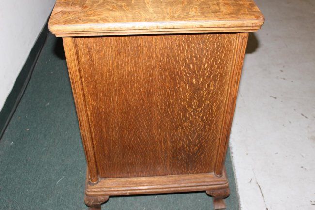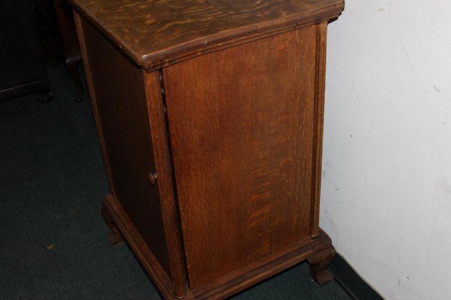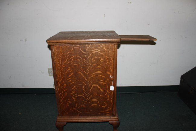 GREAT QUARTER SAWN OAK VICTROLA CABINET STAND WITH STORAGE COMPARTMENT - MINT AND ORIGINAL - 34.5 X 22 X 19